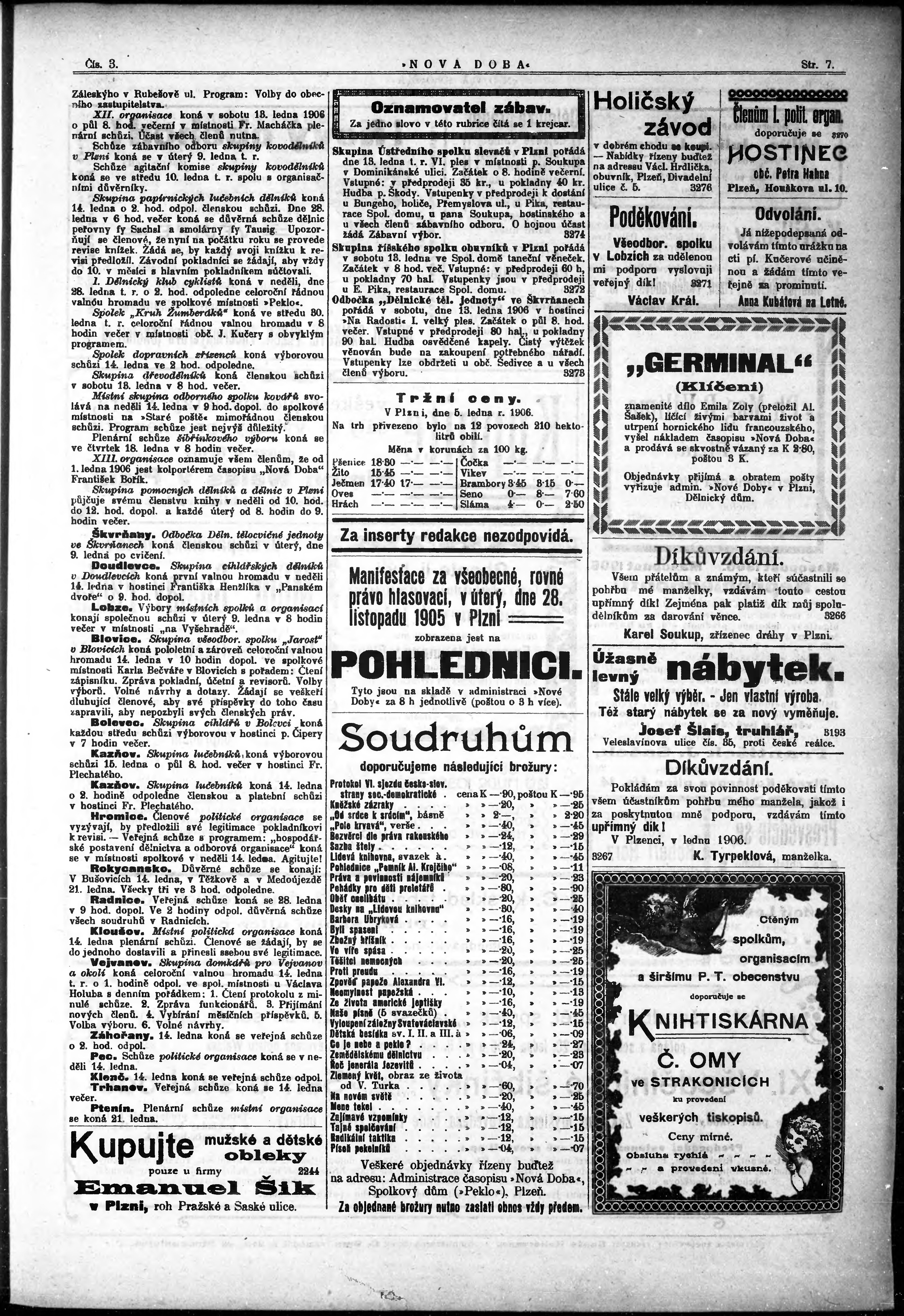 * Datum vydání výtisku: 10.1.1906 Číslo výtisku: 3