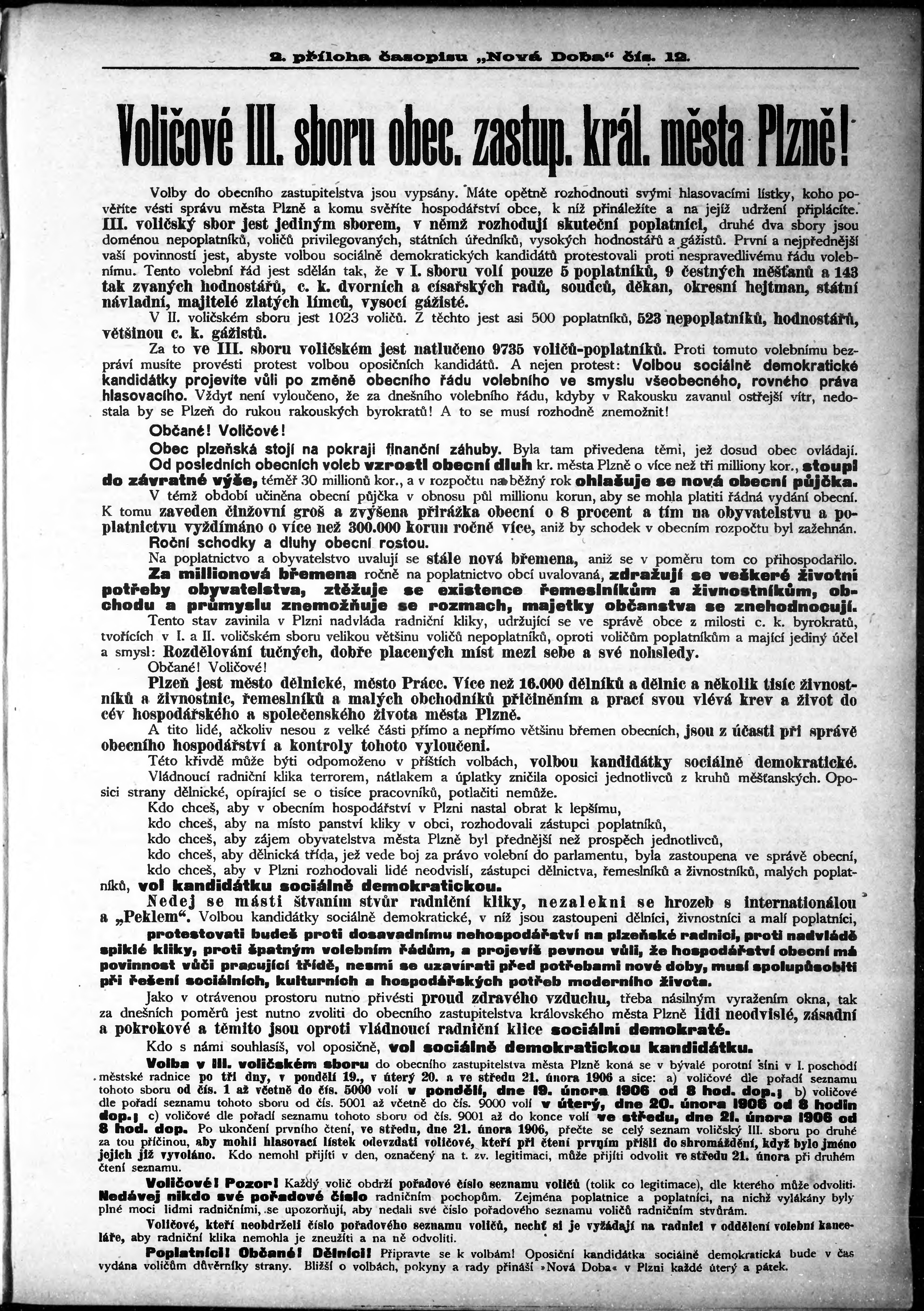 * Datum vydání výtisku: 10.2.1906 Číslo výtisku: 12