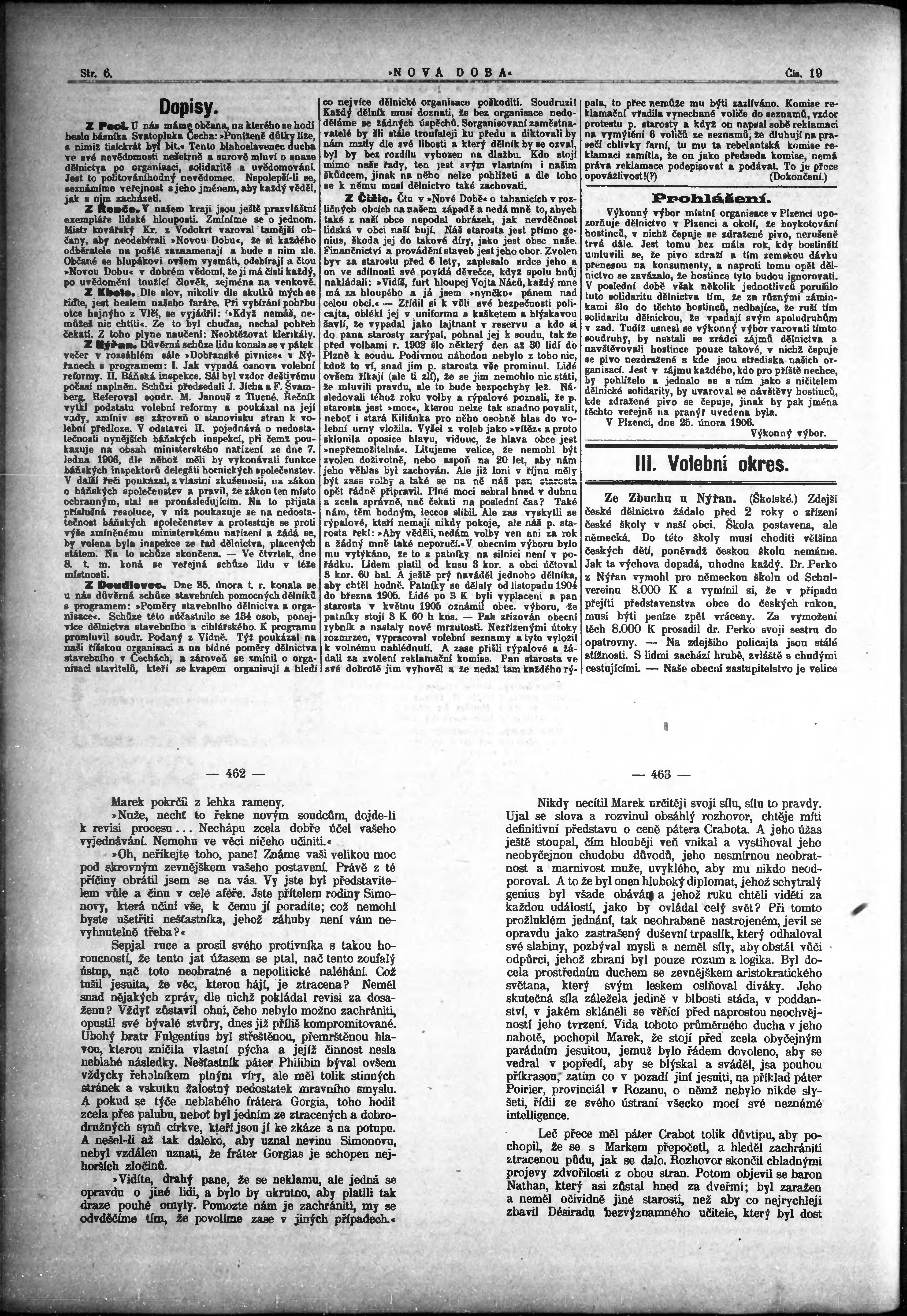 * Datum vydání výtisku: 7.3.1906 Číslo výtisku: 19