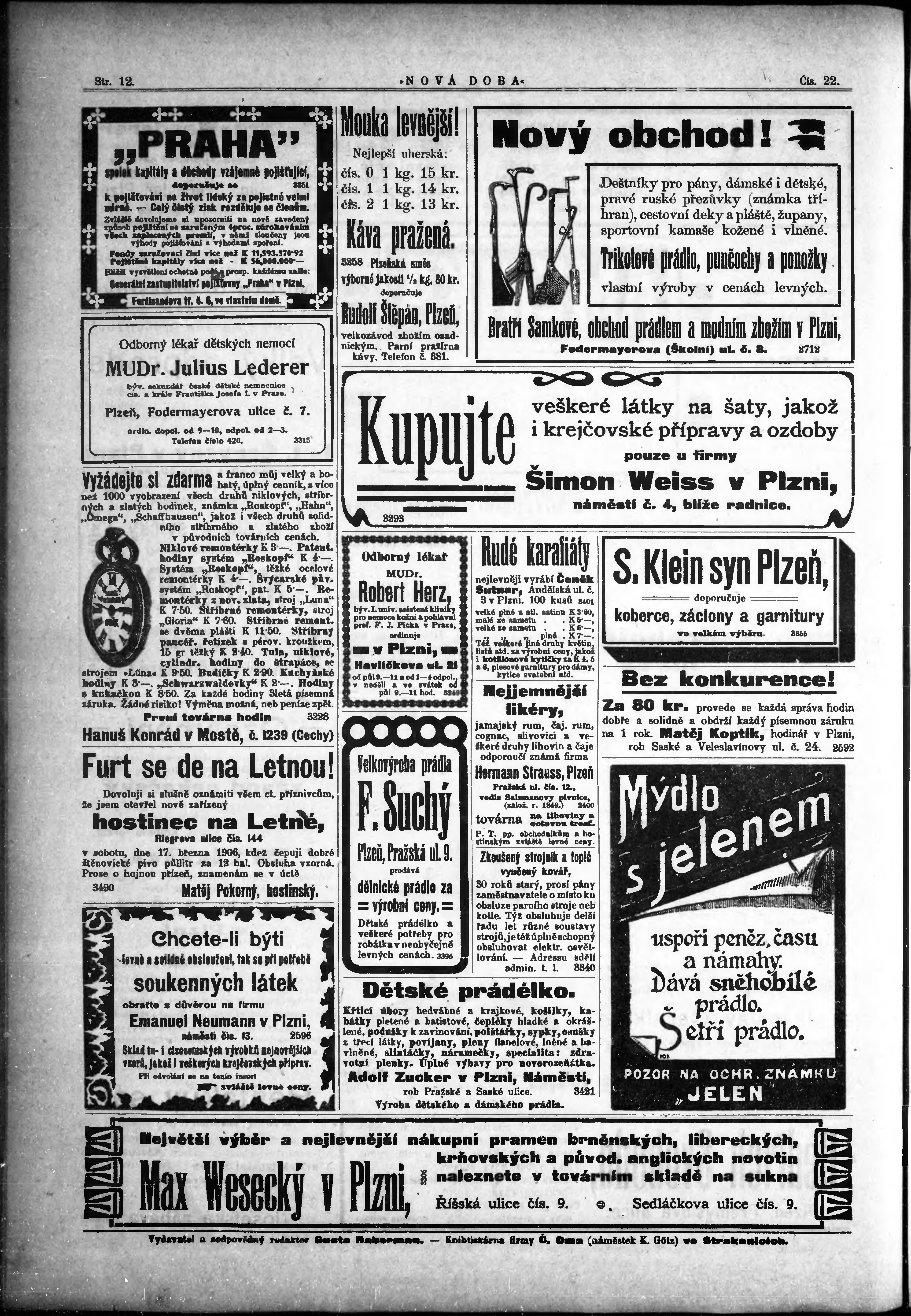 * Datum vydání výtisku: 17.3.1906 Číslo výtisku: 22