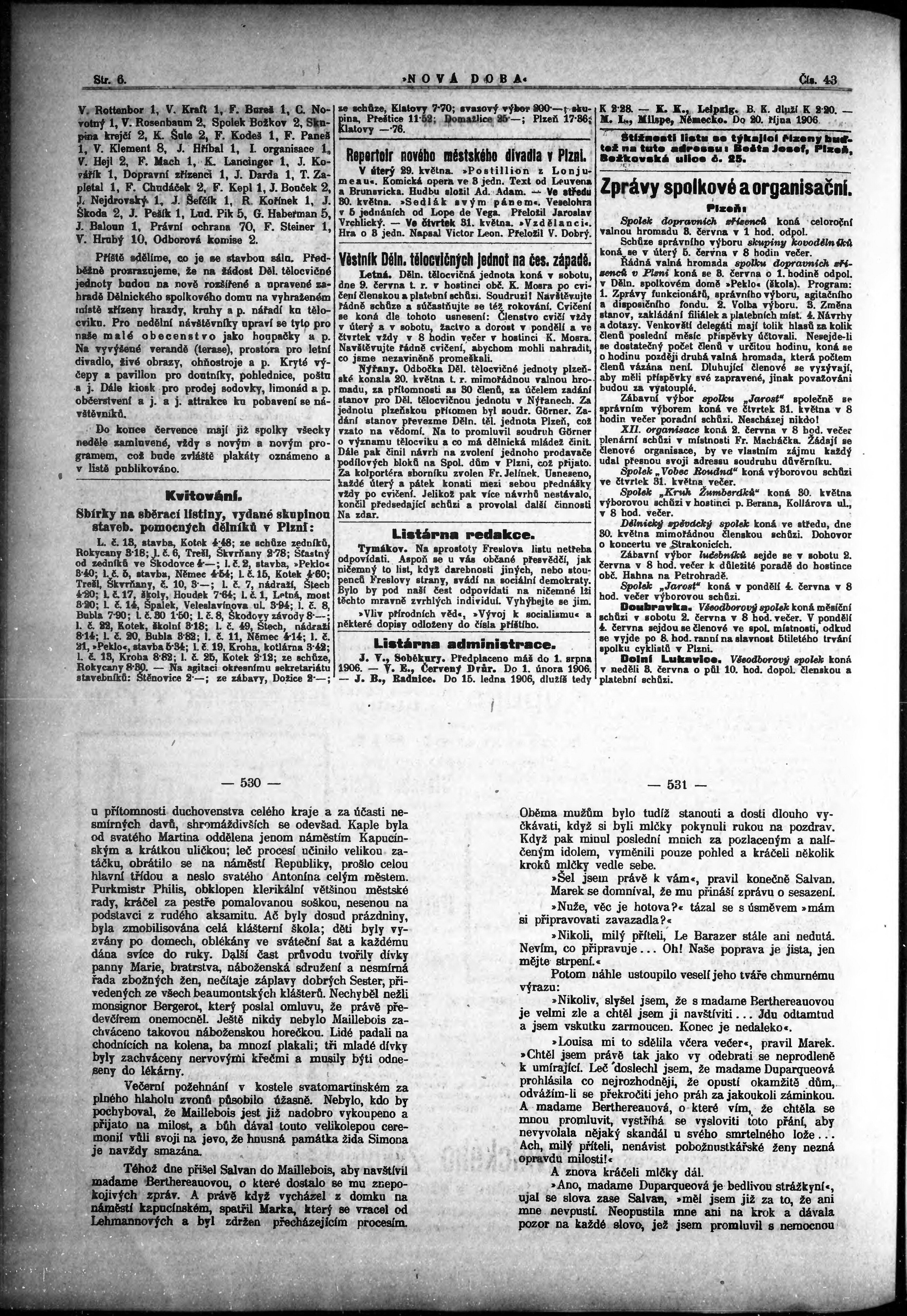 * Datum vydání výtisku: 30.5.1906 Číslo výtisku: 43