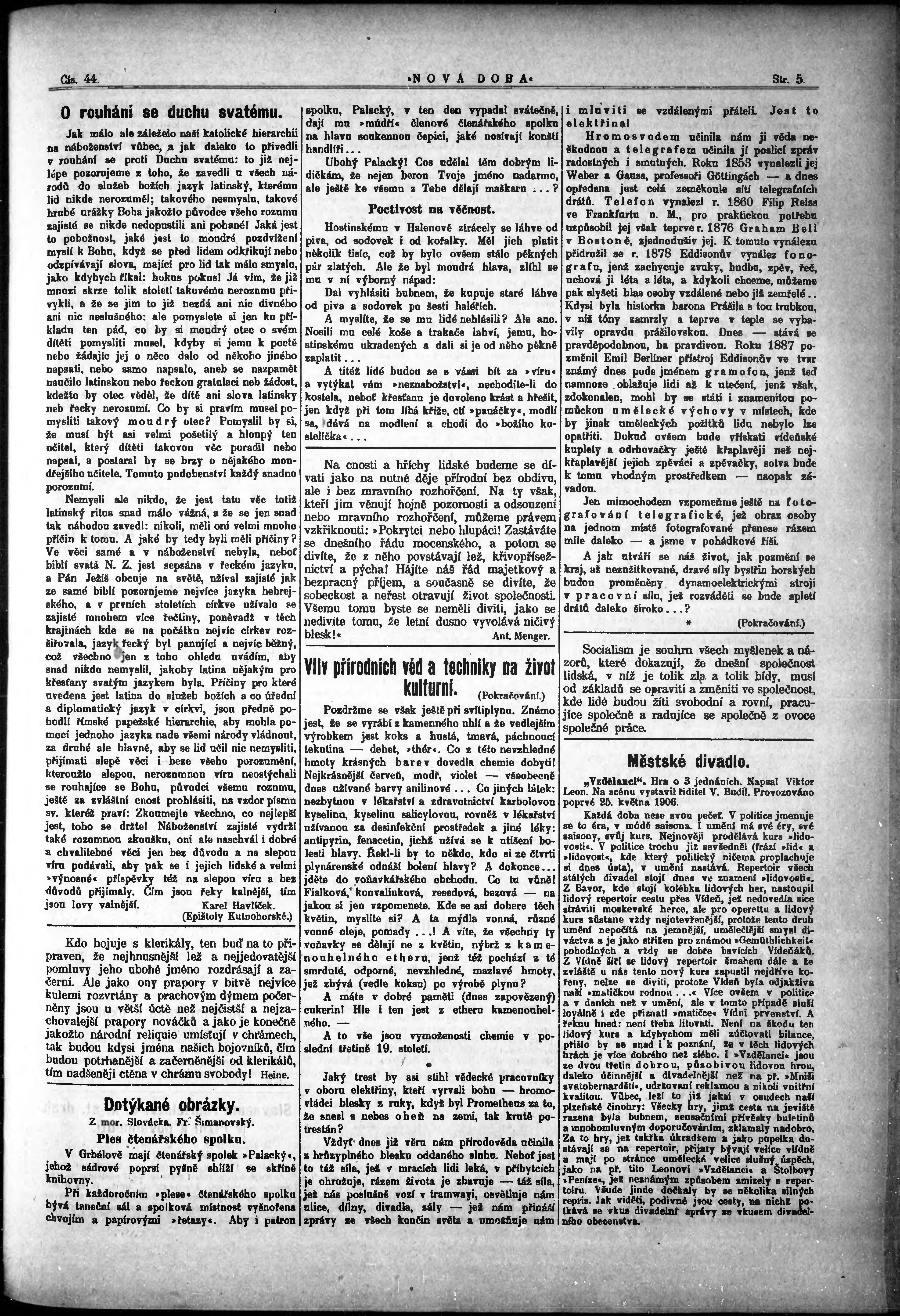 * Datum vydání výtisku: 2.6.1906 Číslo výtisku: 44