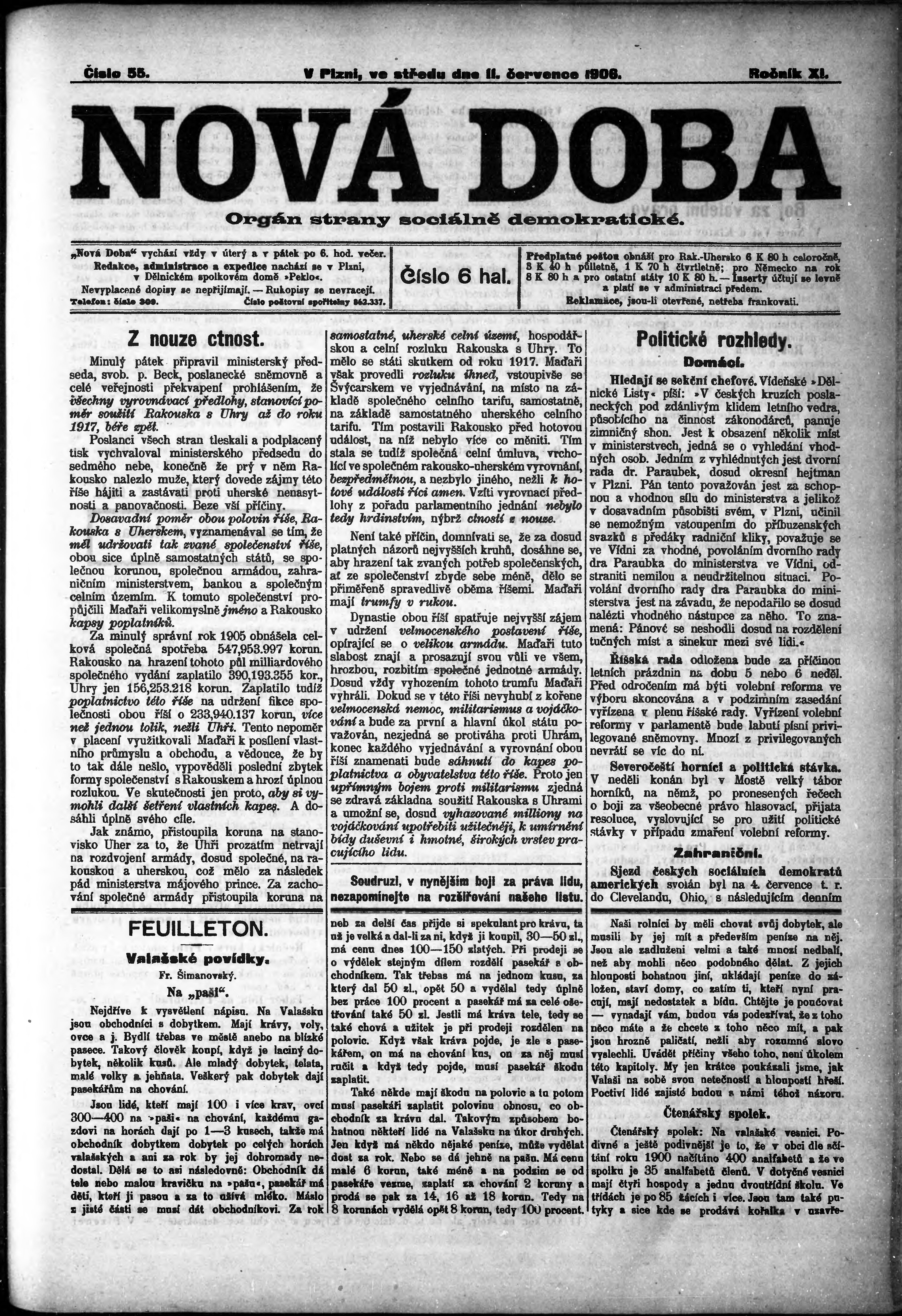* Datum vydání výtisku: 11.7.1906 Číslo výtisku: 55