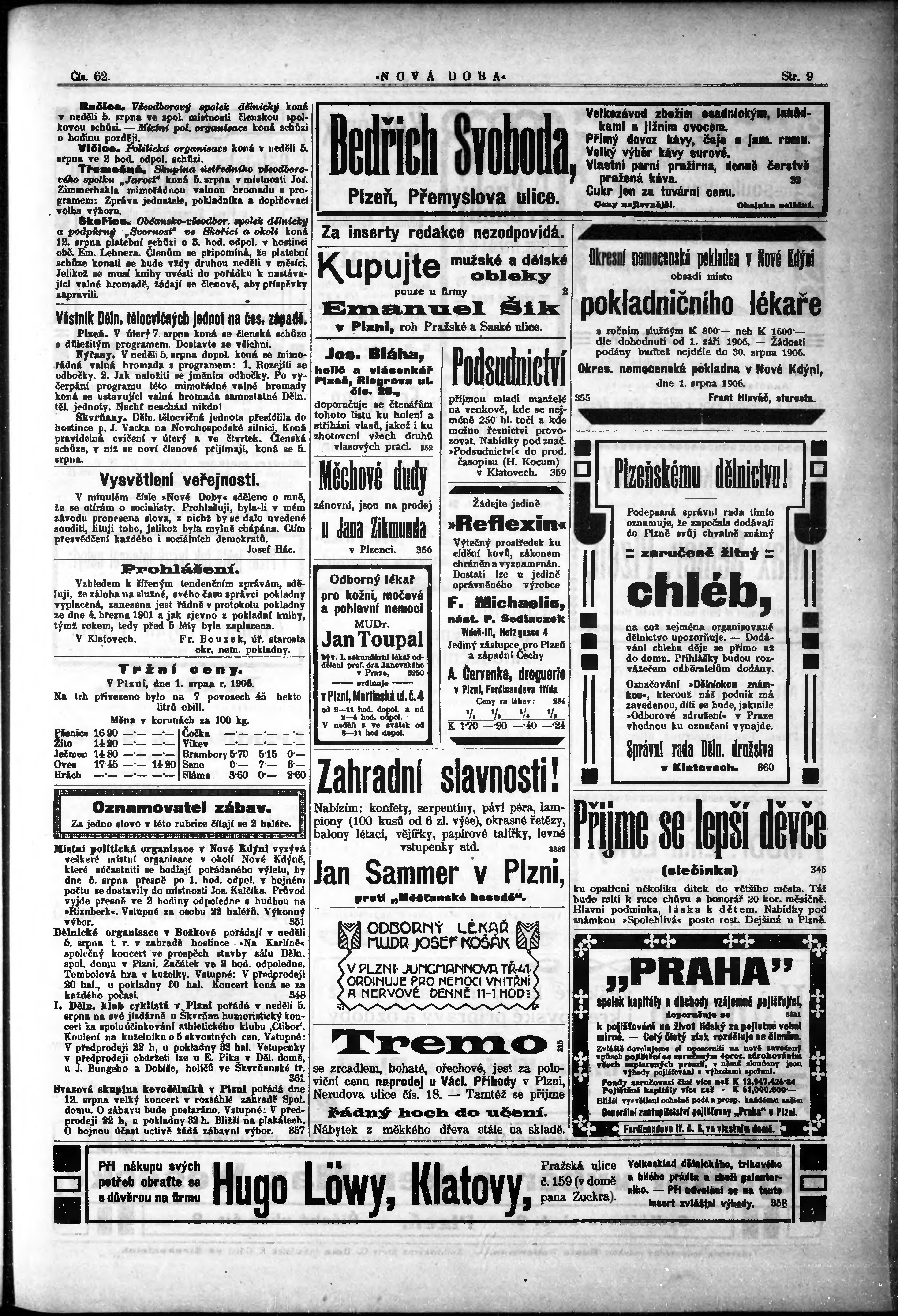 * Datum vydání výtisku: 4.8.1906 Číslo výtisku: 62