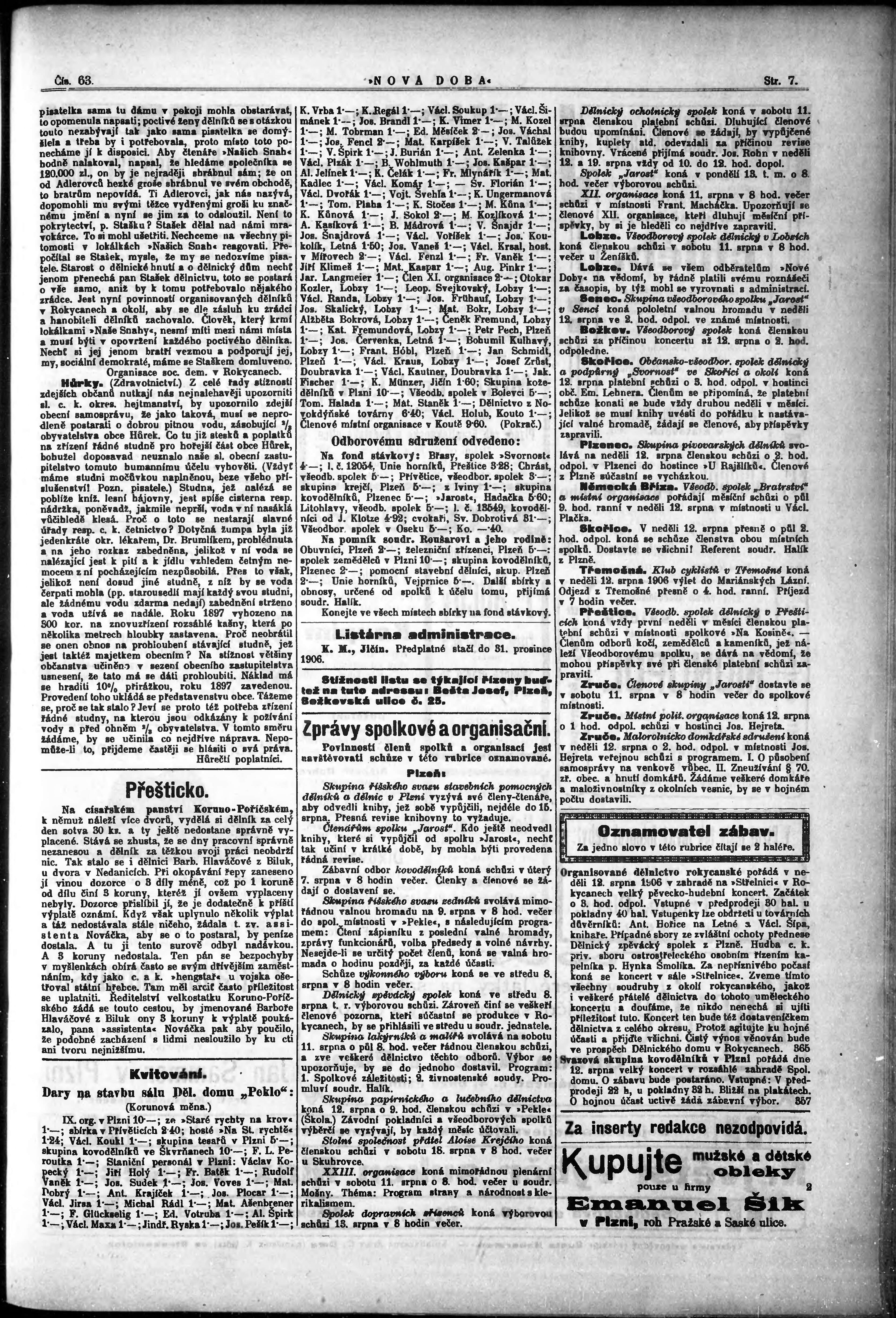 * Datum vydání výtisku: 8.8.1906 Číslo výtisku: 63