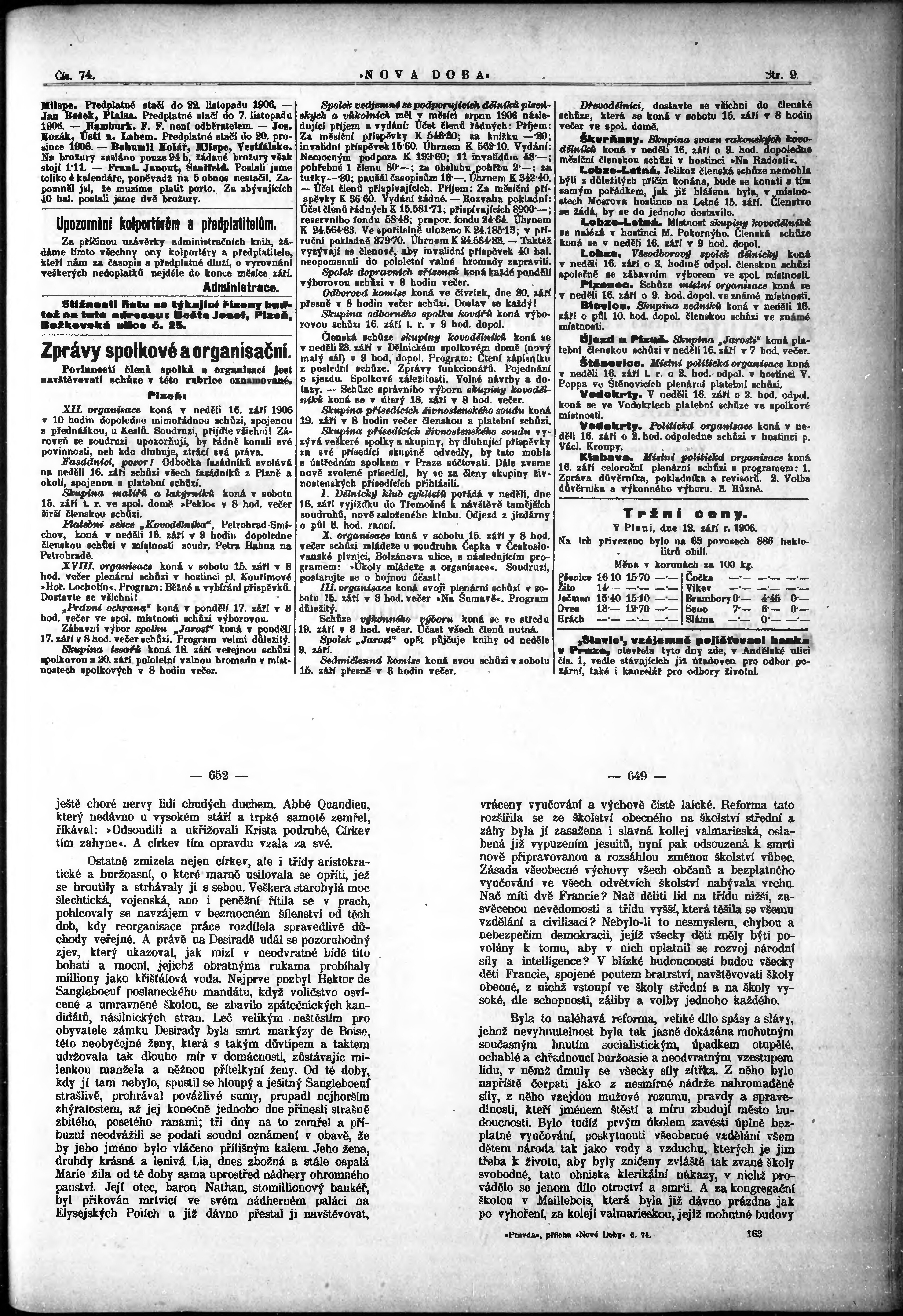 * Datum vydání výtisku: 15.9.1906 Číslo výtisku: 74
