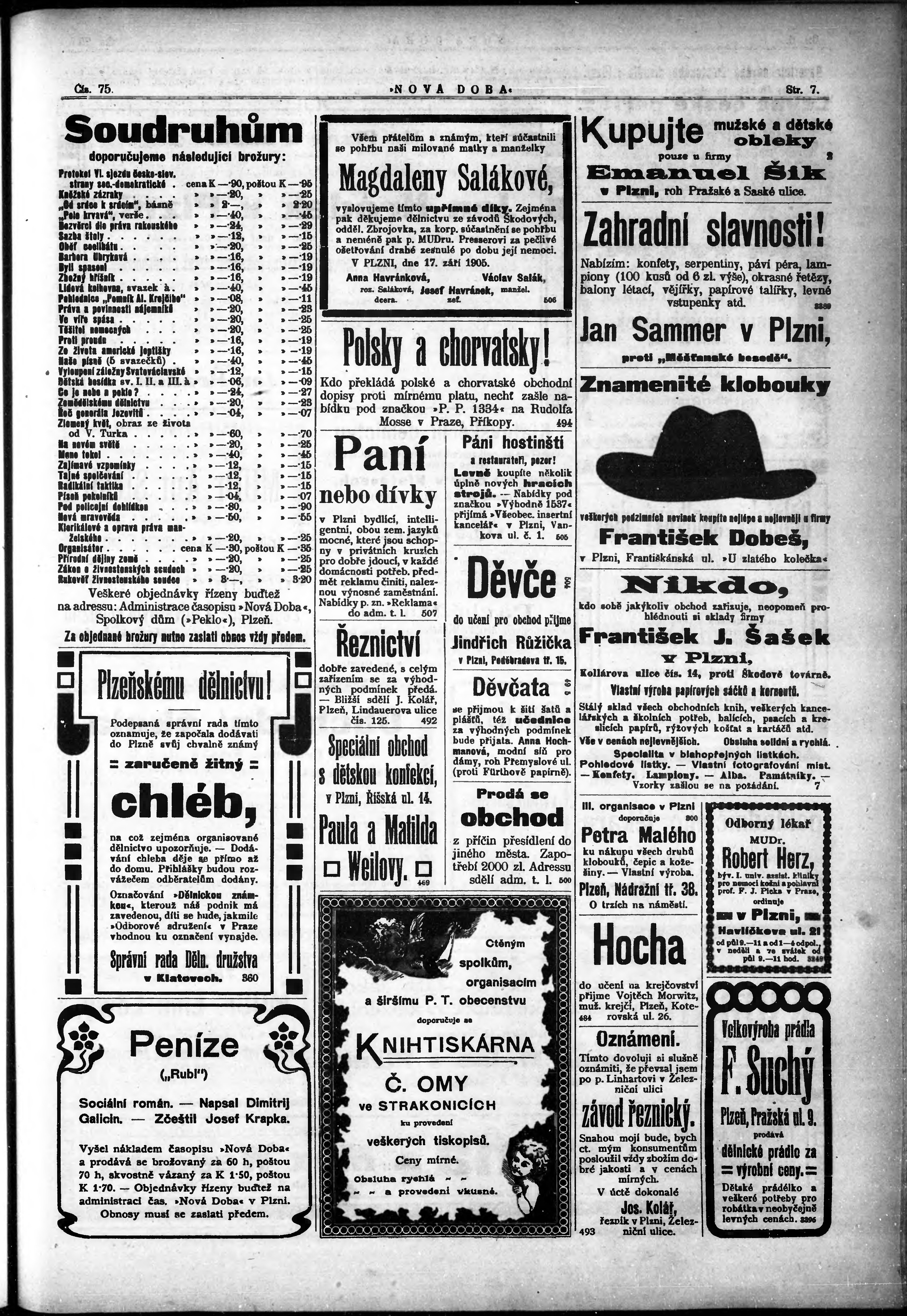 * Datum vydání výtisku: 19.9.1906 Číslo výtisku: 75