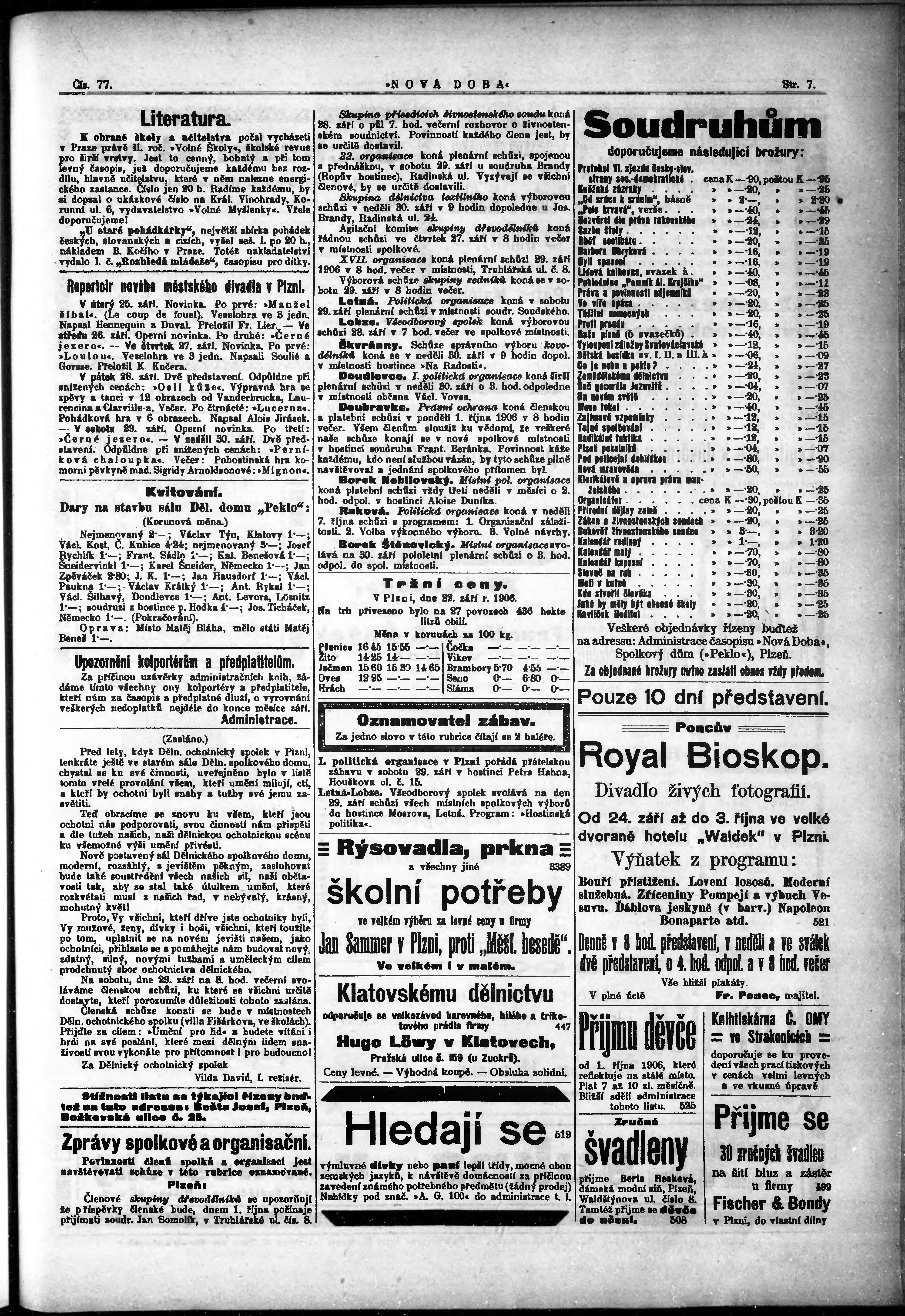 * Datum vydání výtisku: 26.9.1906 Číslo výtisku: 77