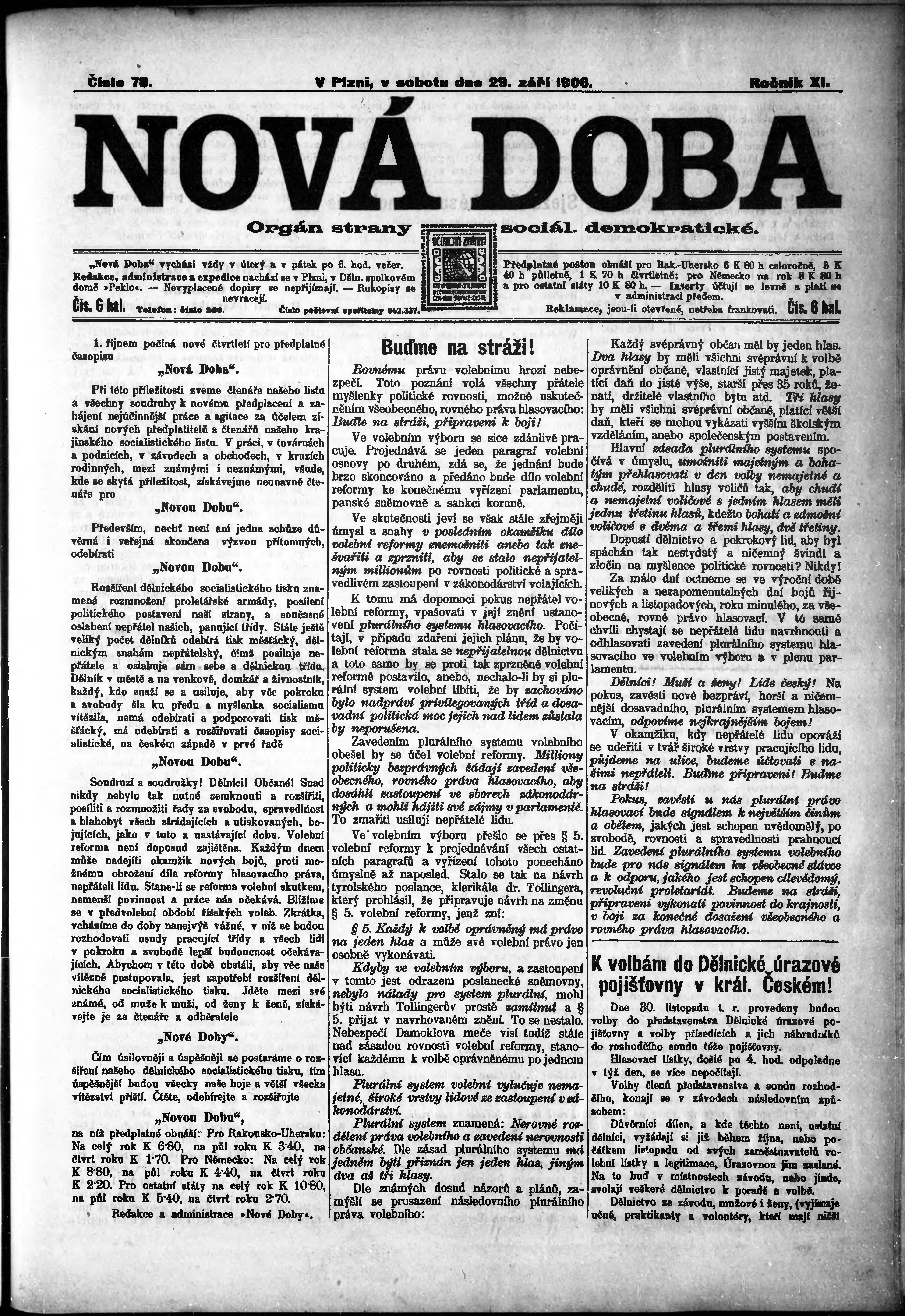 * Datum vydání výtisku: 29.9.1906 Číslo výtisku: 78