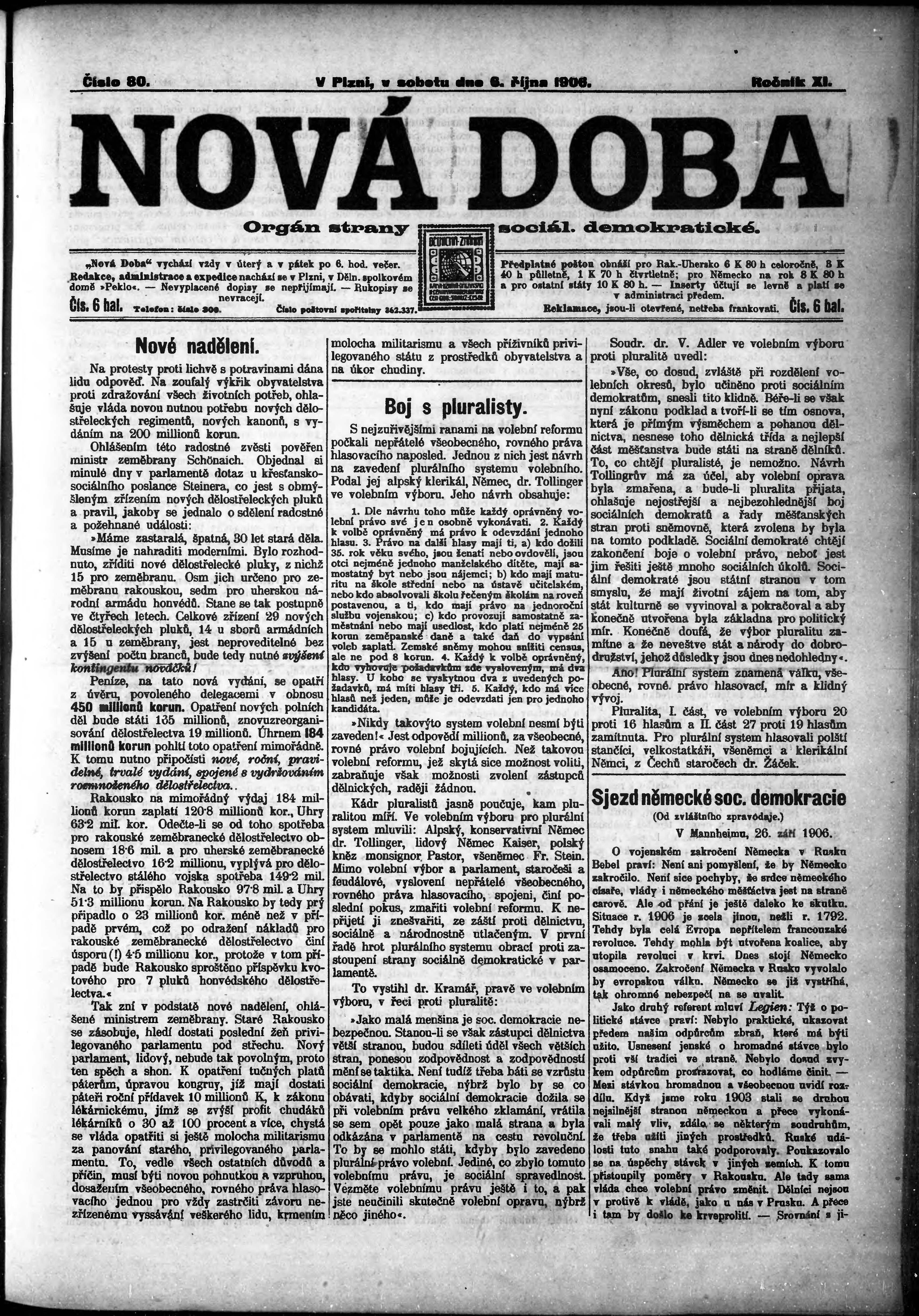 * Datum vydání výtisku: 6.10.1906 Číslo výtisku: 80