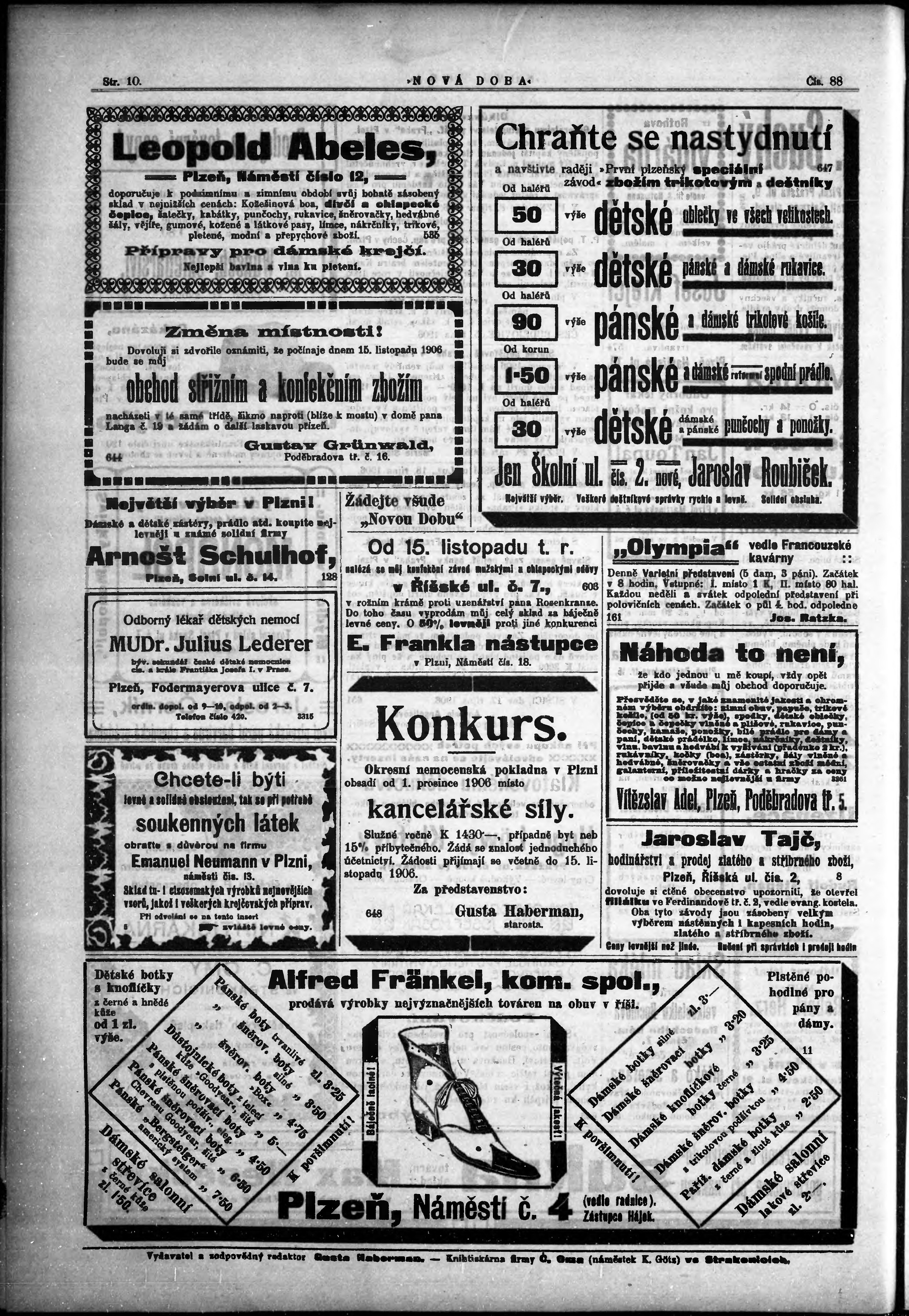 * Datum vydání výtisku: 3.11.1906 Číslo výtisku: 88