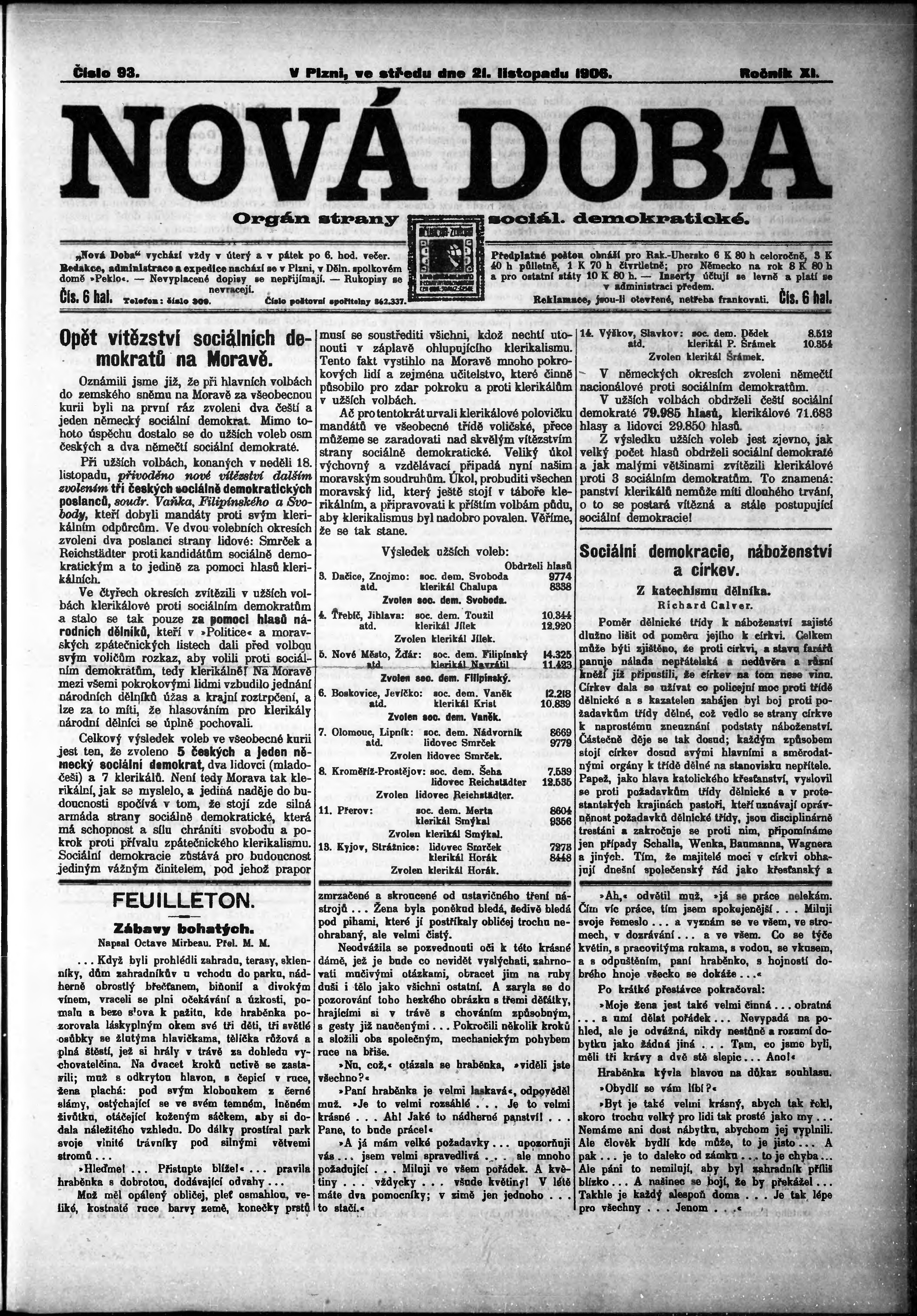 * Datum vydání výtisku: 21.11.1906 Číslo výtisku: 93