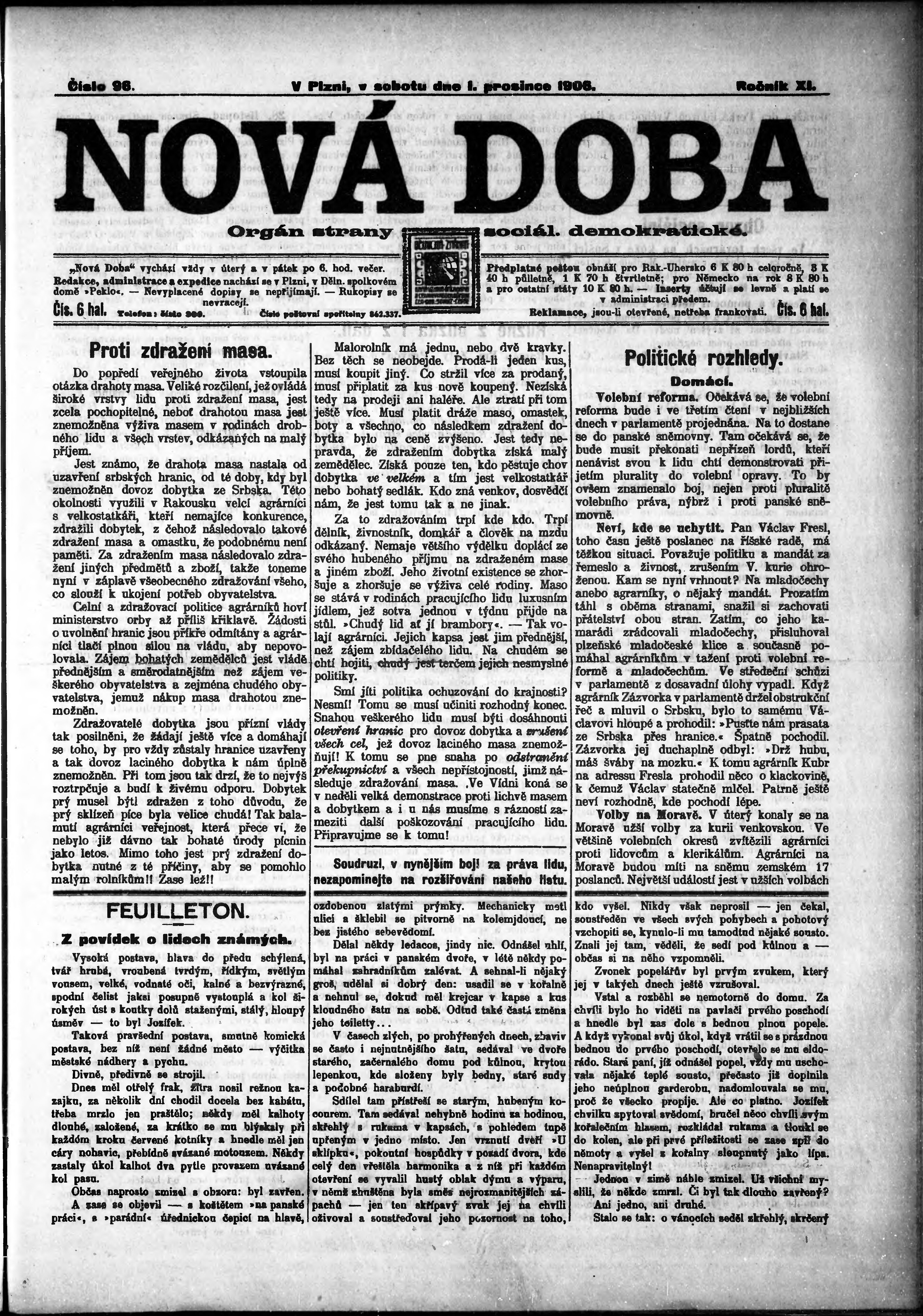 * Datum vydání výtisku: 1.12.1906 Číslo výtisku: 96