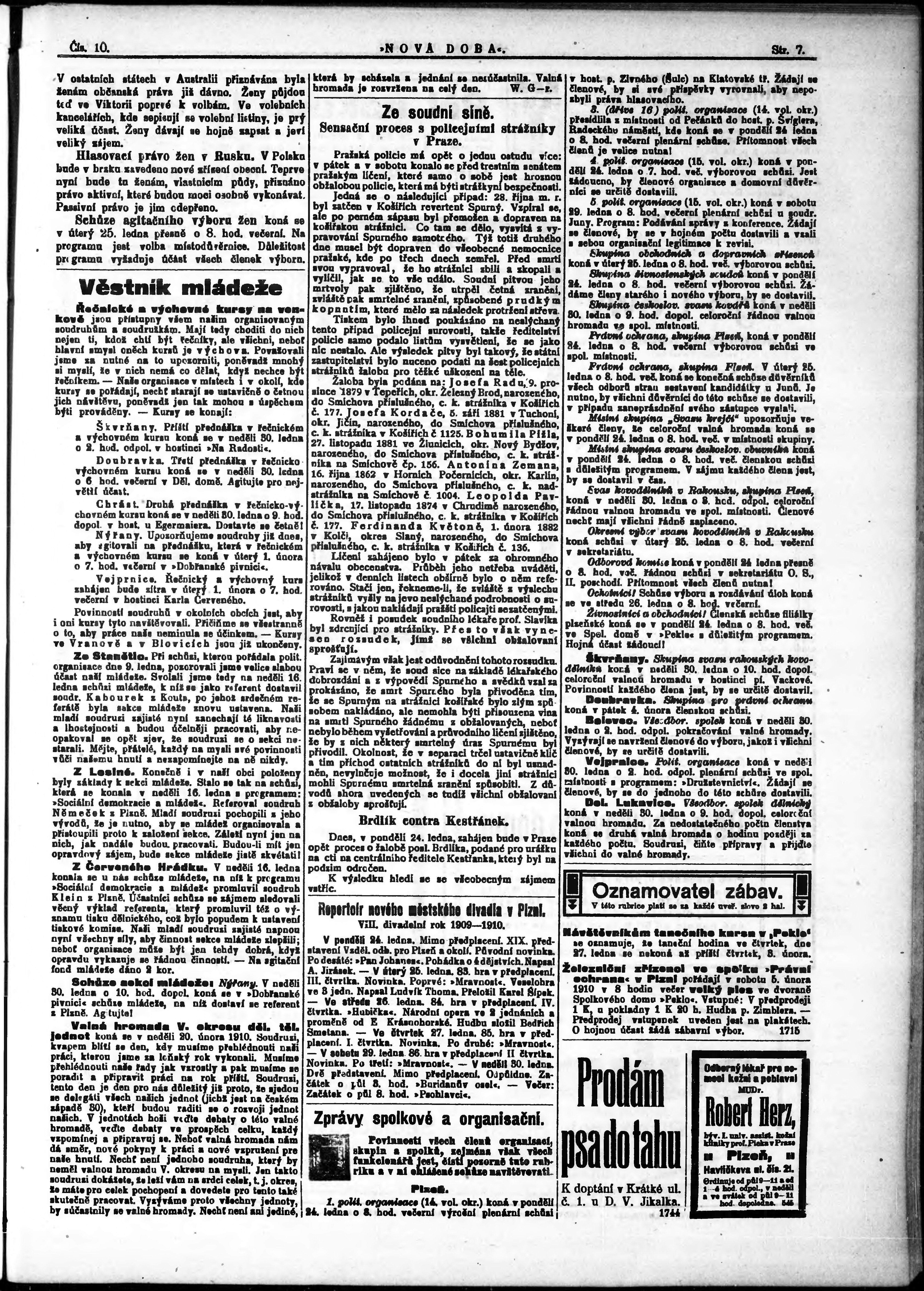 * Datum vydání výtisku: 24.1.1910 Číslo výtisku: 10