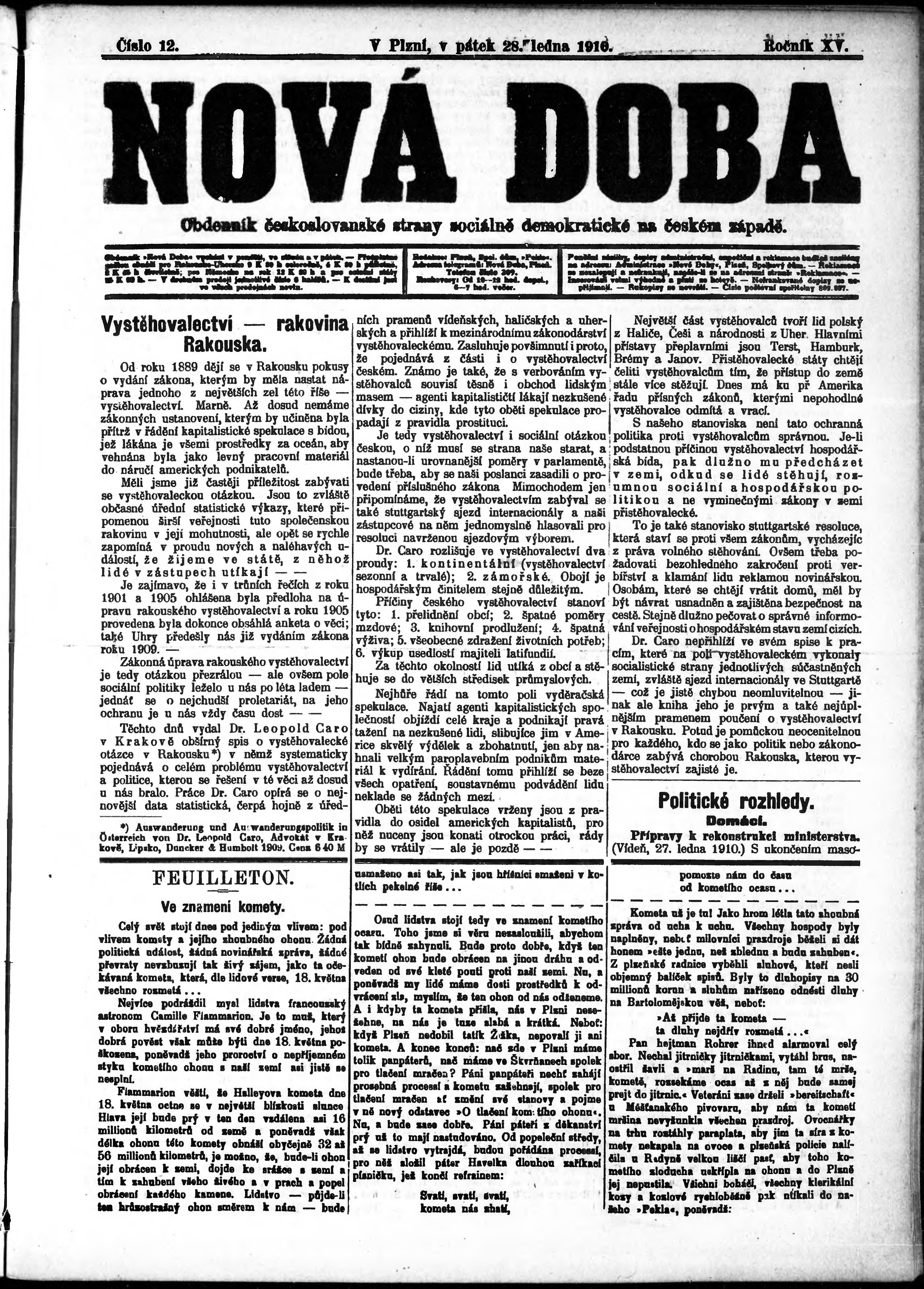 * Datum vydání výtisku: 28.1.1910 Číslo výtisku: 12
