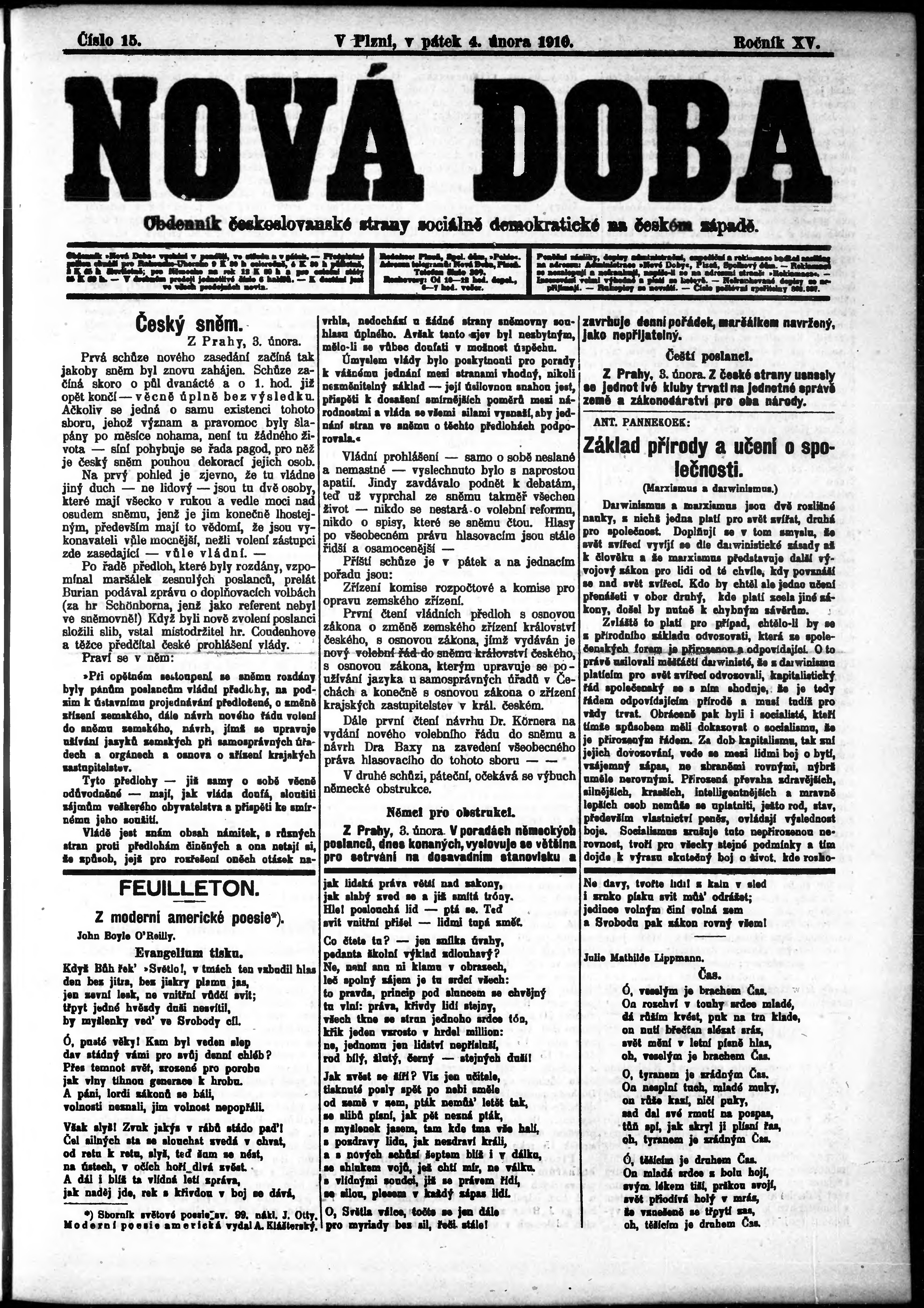 * Datum vydání výtisku: 4.2.1910 Číslo výtisku: 15