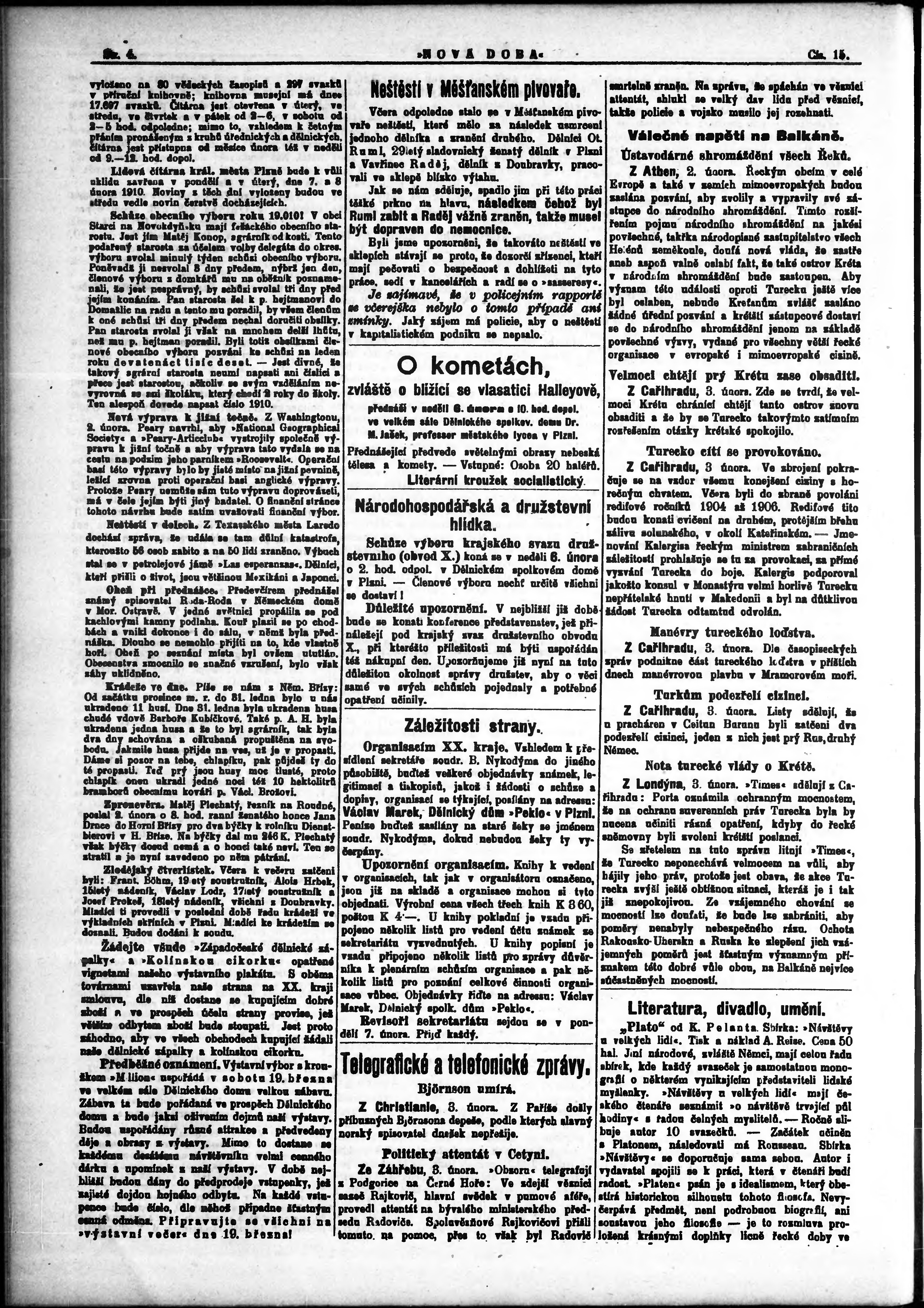 * Datum vydání výtisku: 4.2.1910 Číslo výtisku: 15