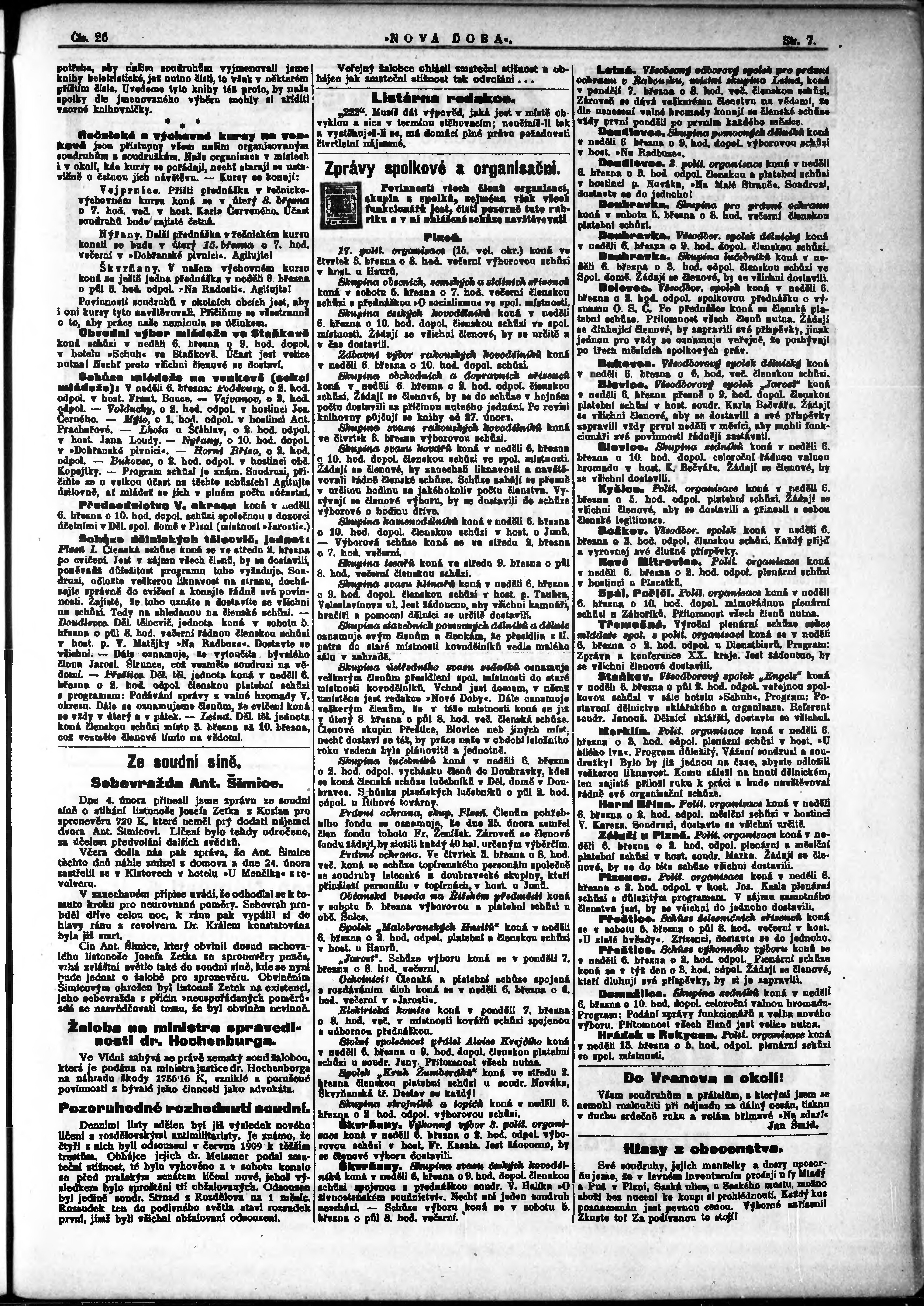 * Datum vydání výtisku: 2.3.1910 Číslo výtisku: 26