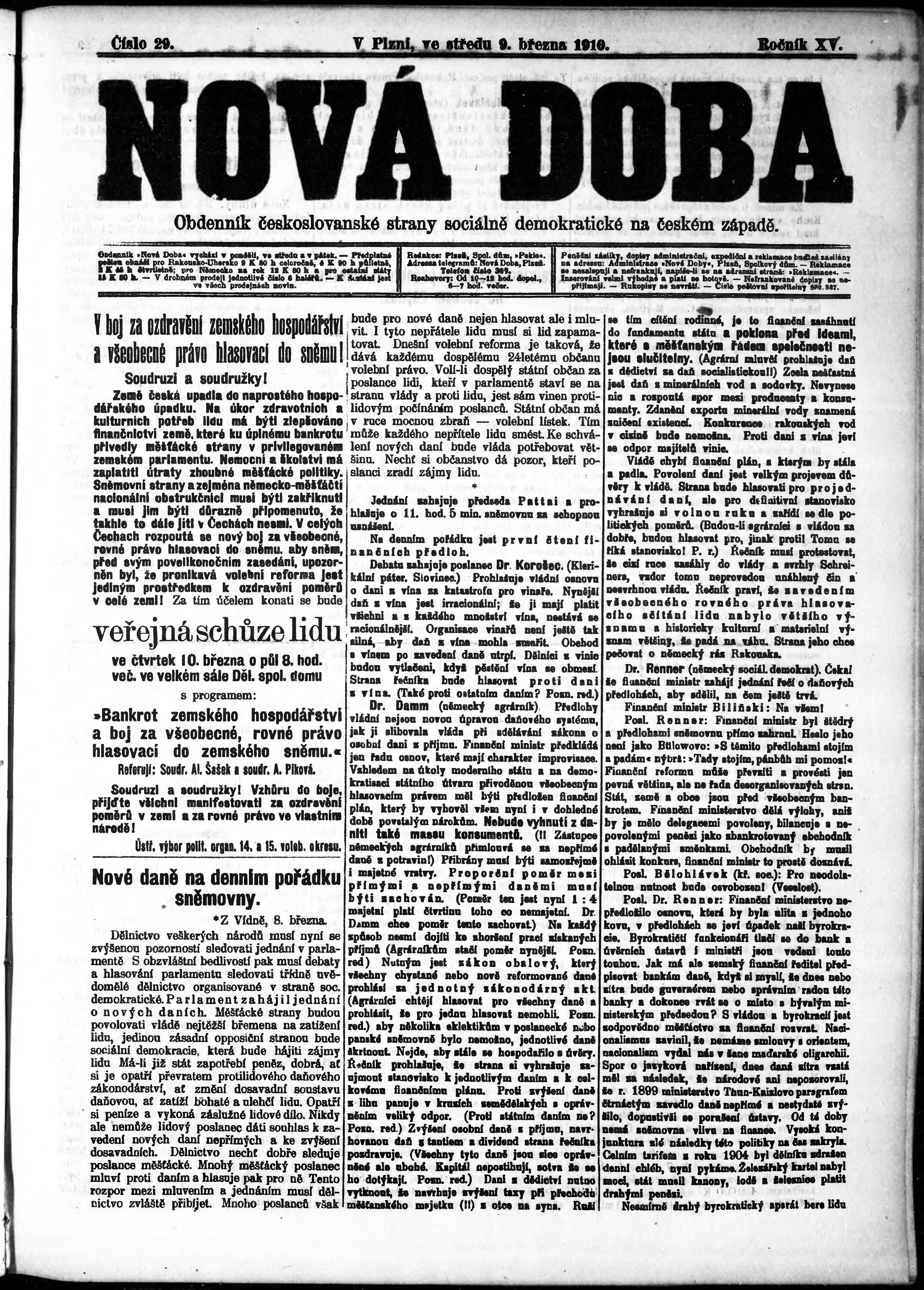 * Datum vydání výtisku: 9.3.1910 Číslo výtisku: 29