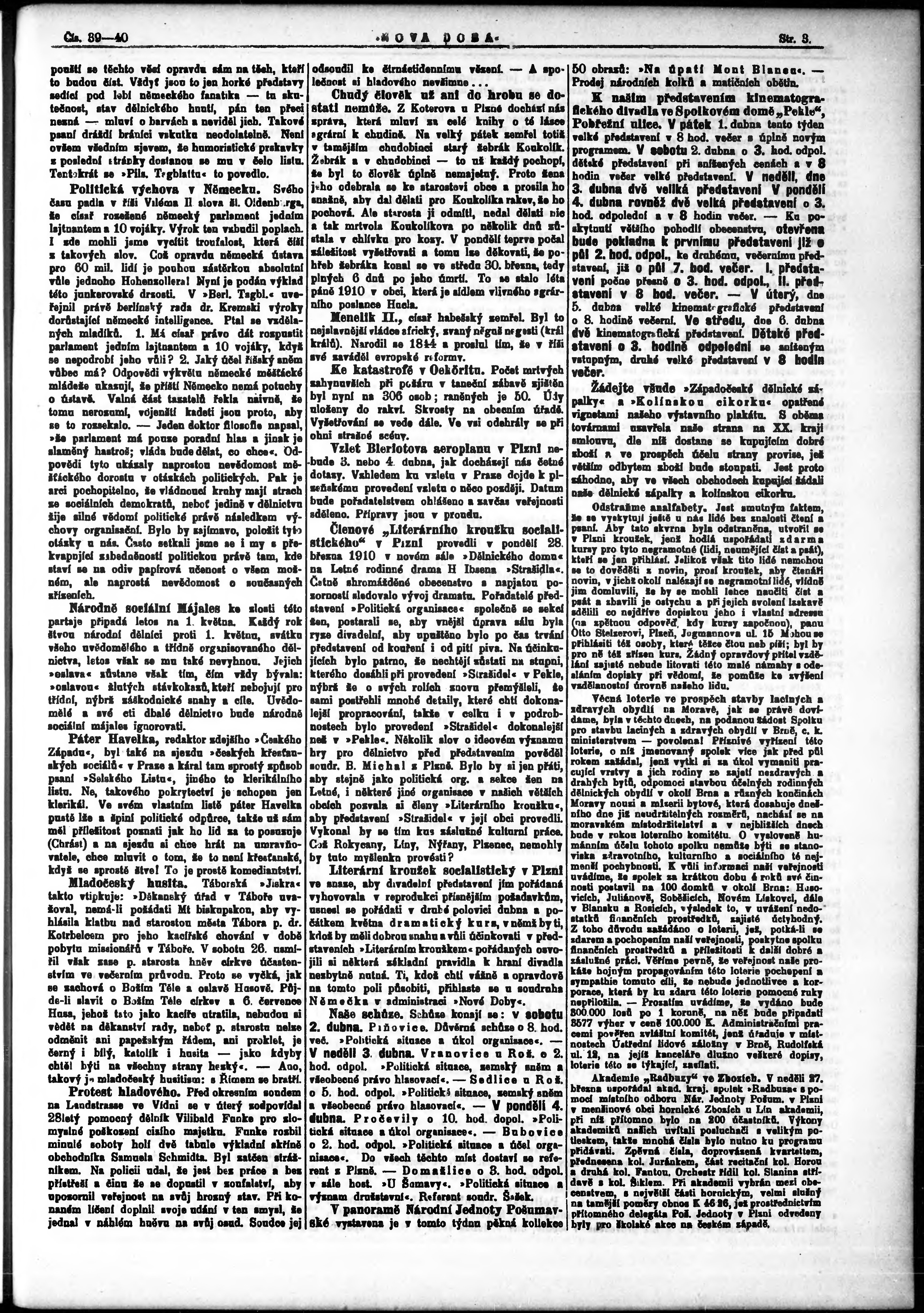 * Datum vydání výtisku: 1.4.1910 Číslo výtisku: 39 - 40