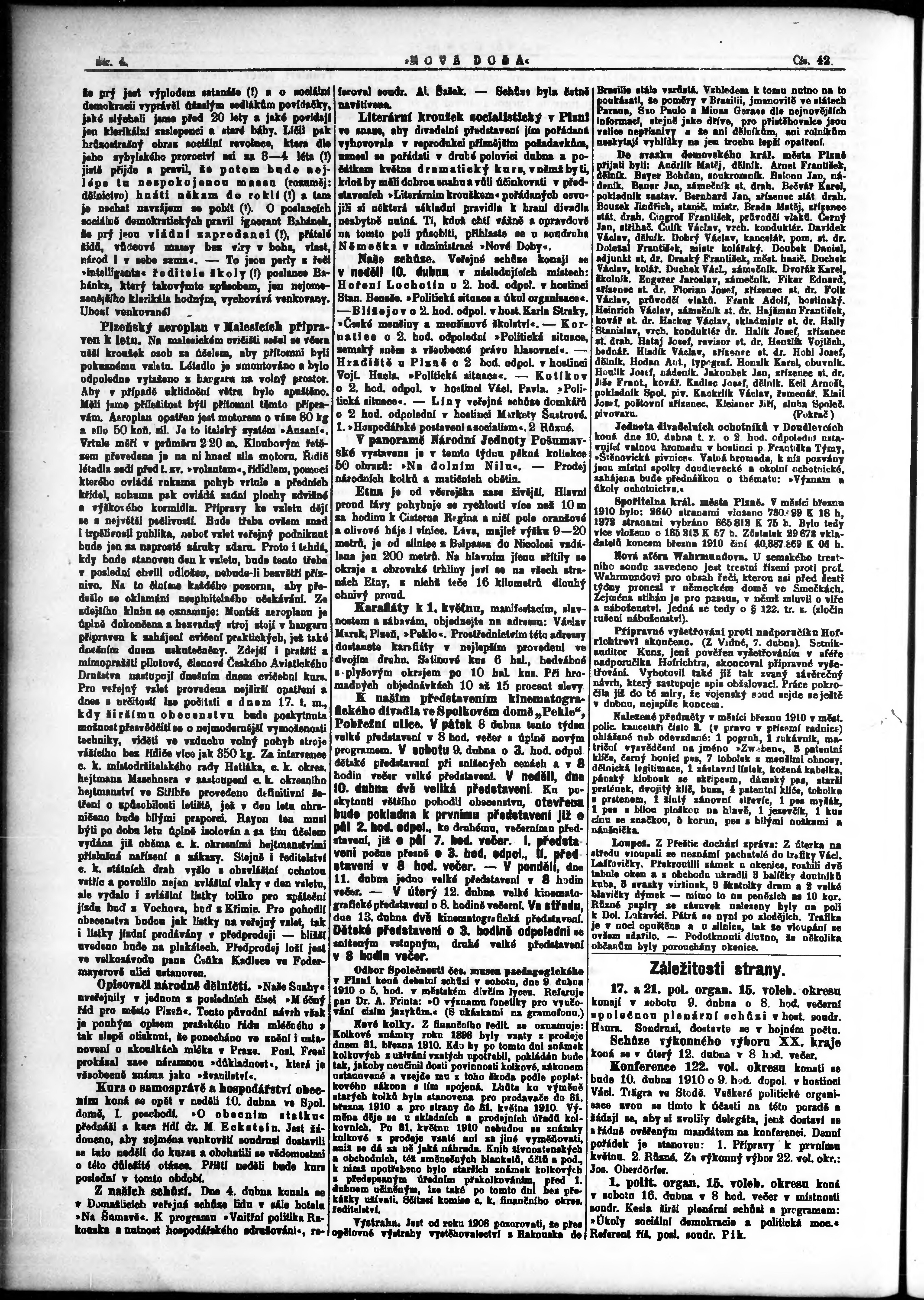 * Datum vydání výtisku: 8.4.1910 Číslo výtisku: 42