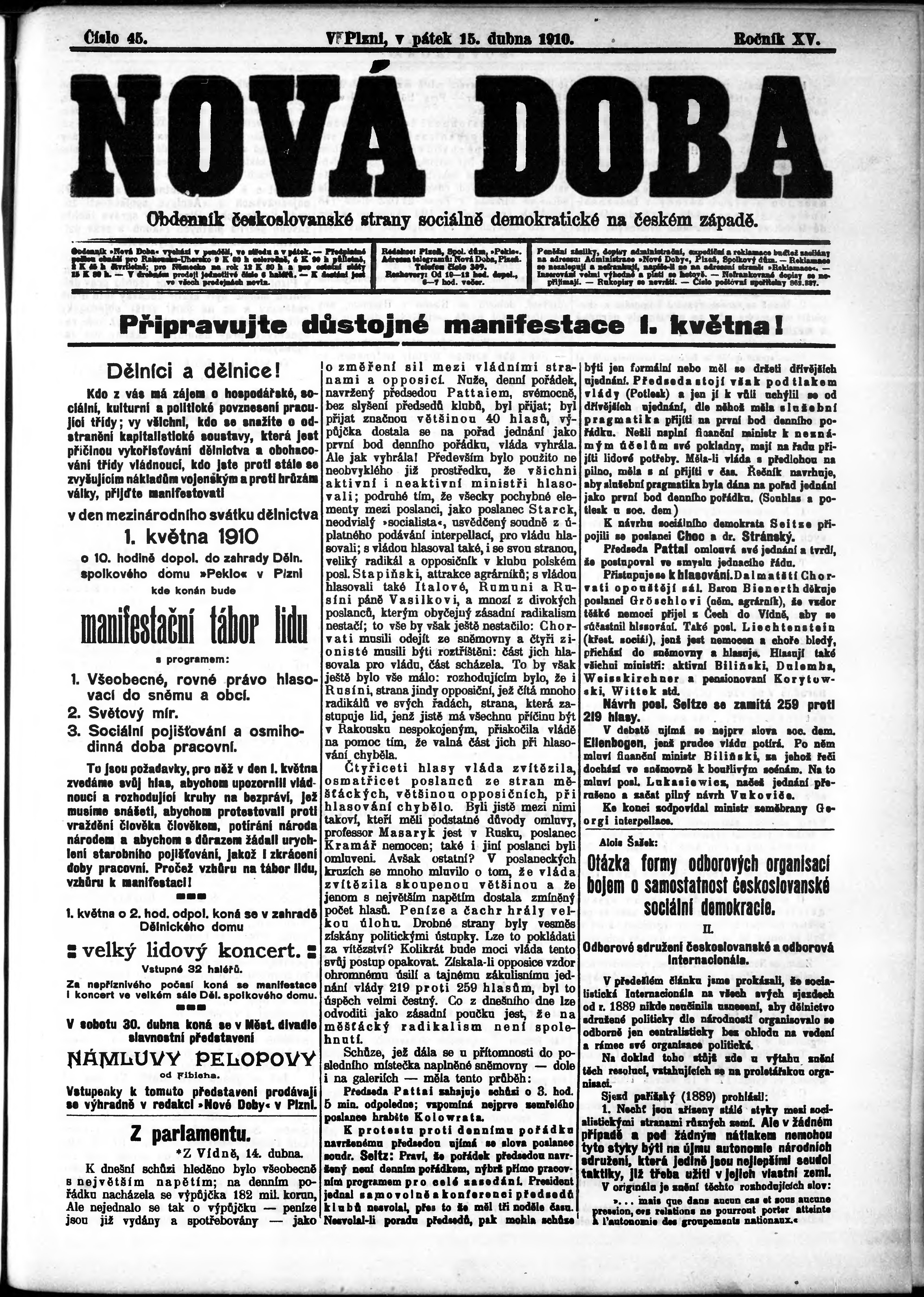 * Datum vydání výtisku: 15.4.1910 Číslo výtisku: 45