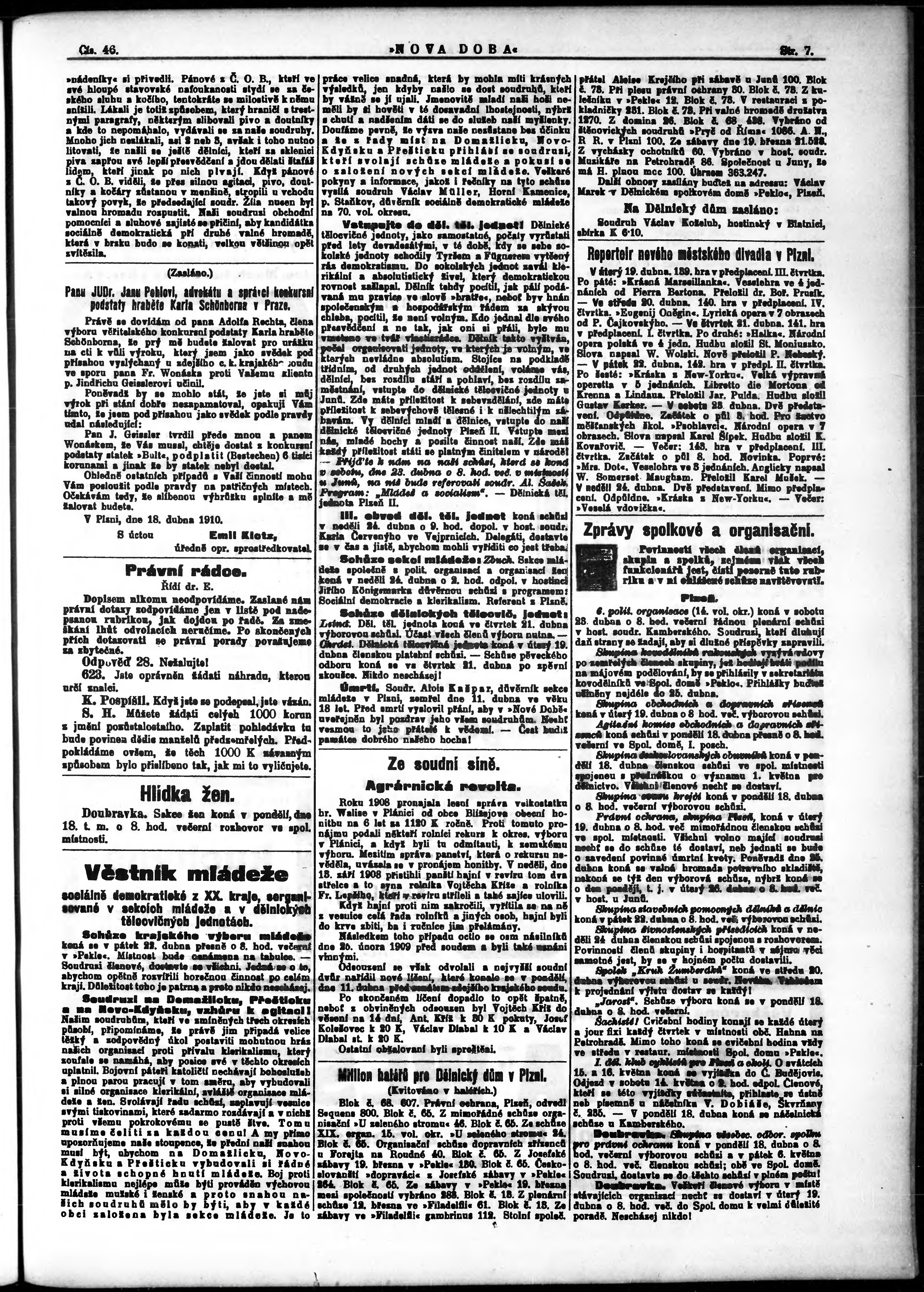 * Datum vydání výtisku: 18.4.1910 Číslo výtisku: 46