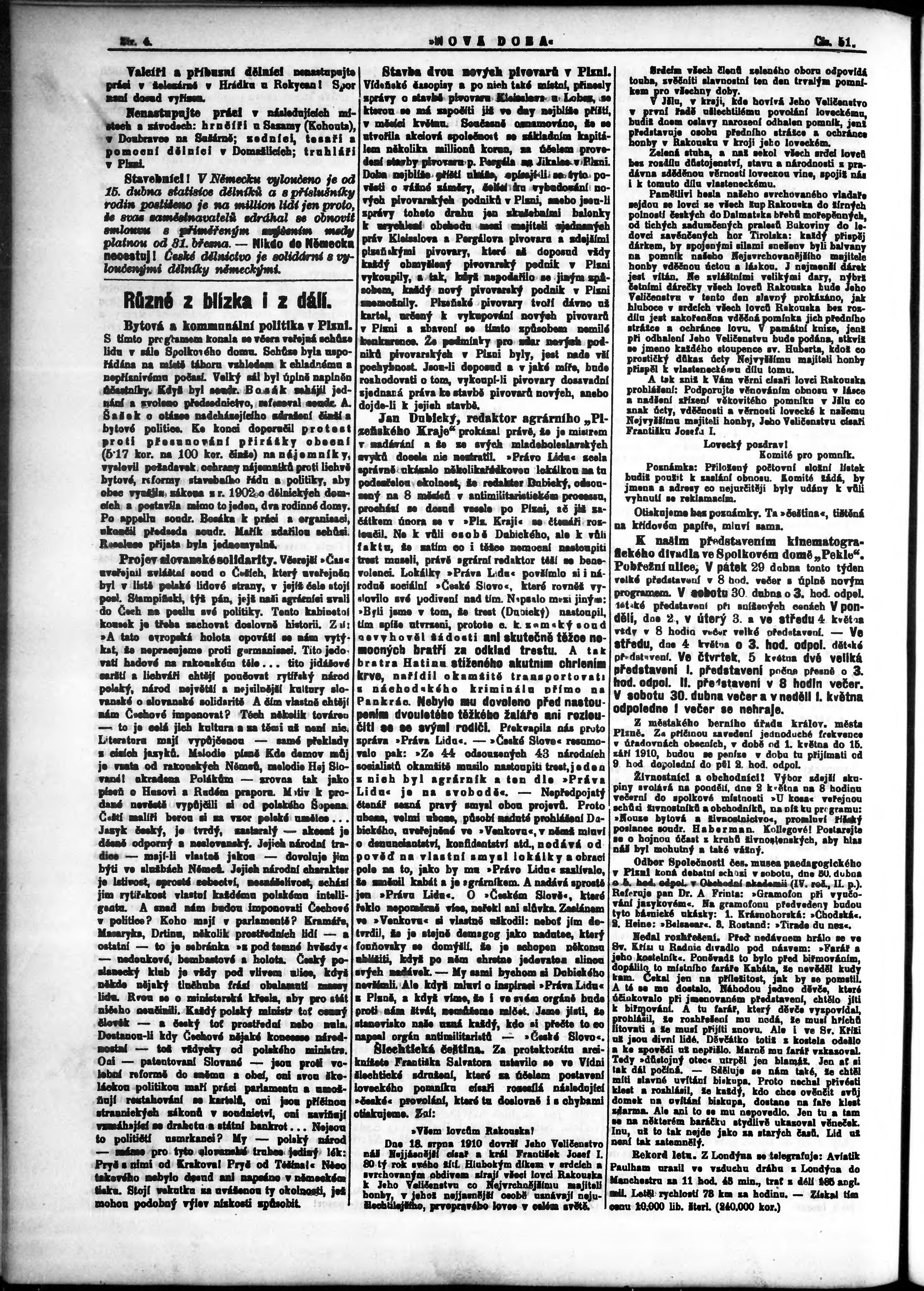 * Datum vydání výtisku: 29.4.1910 Číslo výtisku: 51