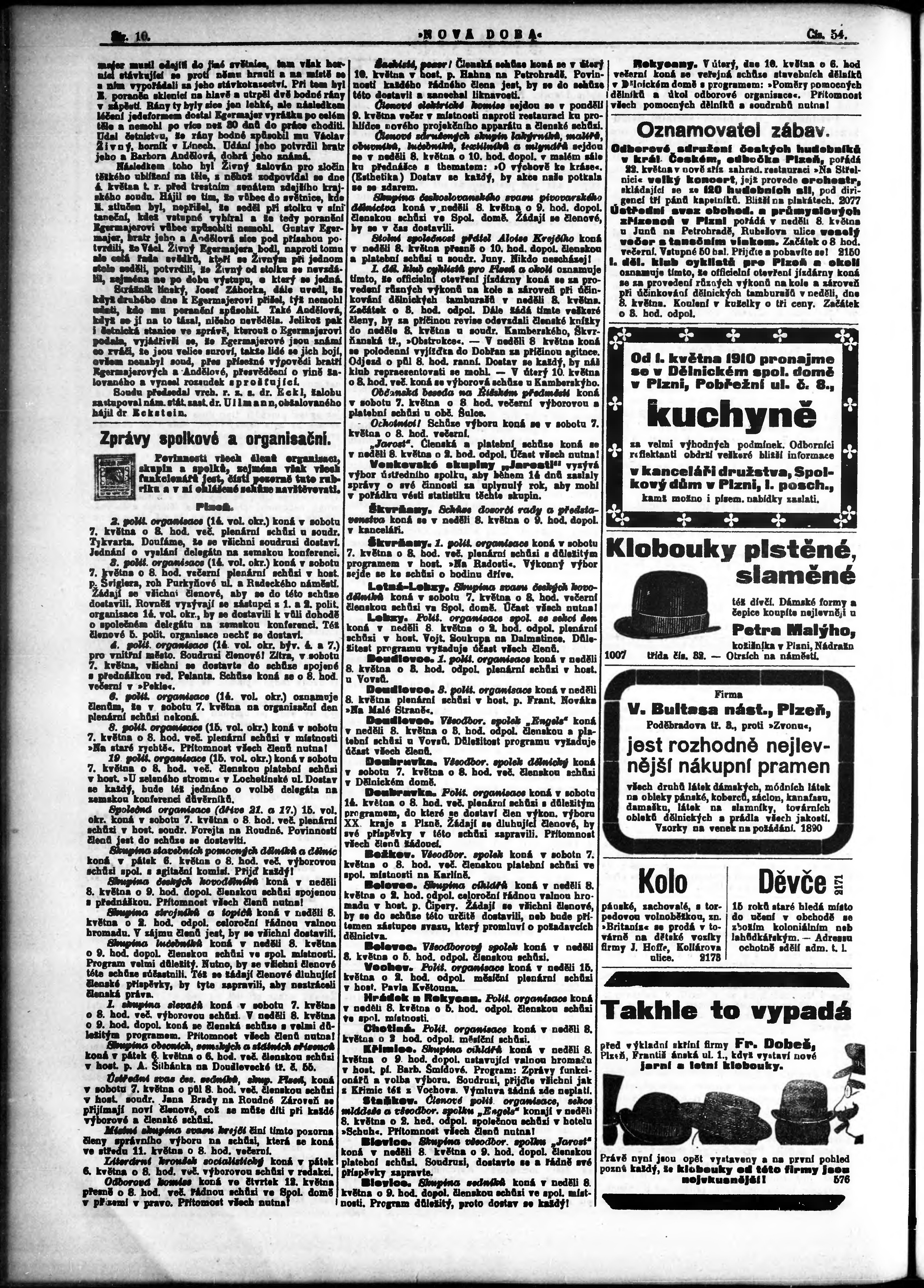 * Datum vydání výtisku: 6.5.1910 Číslo výtisku: 54