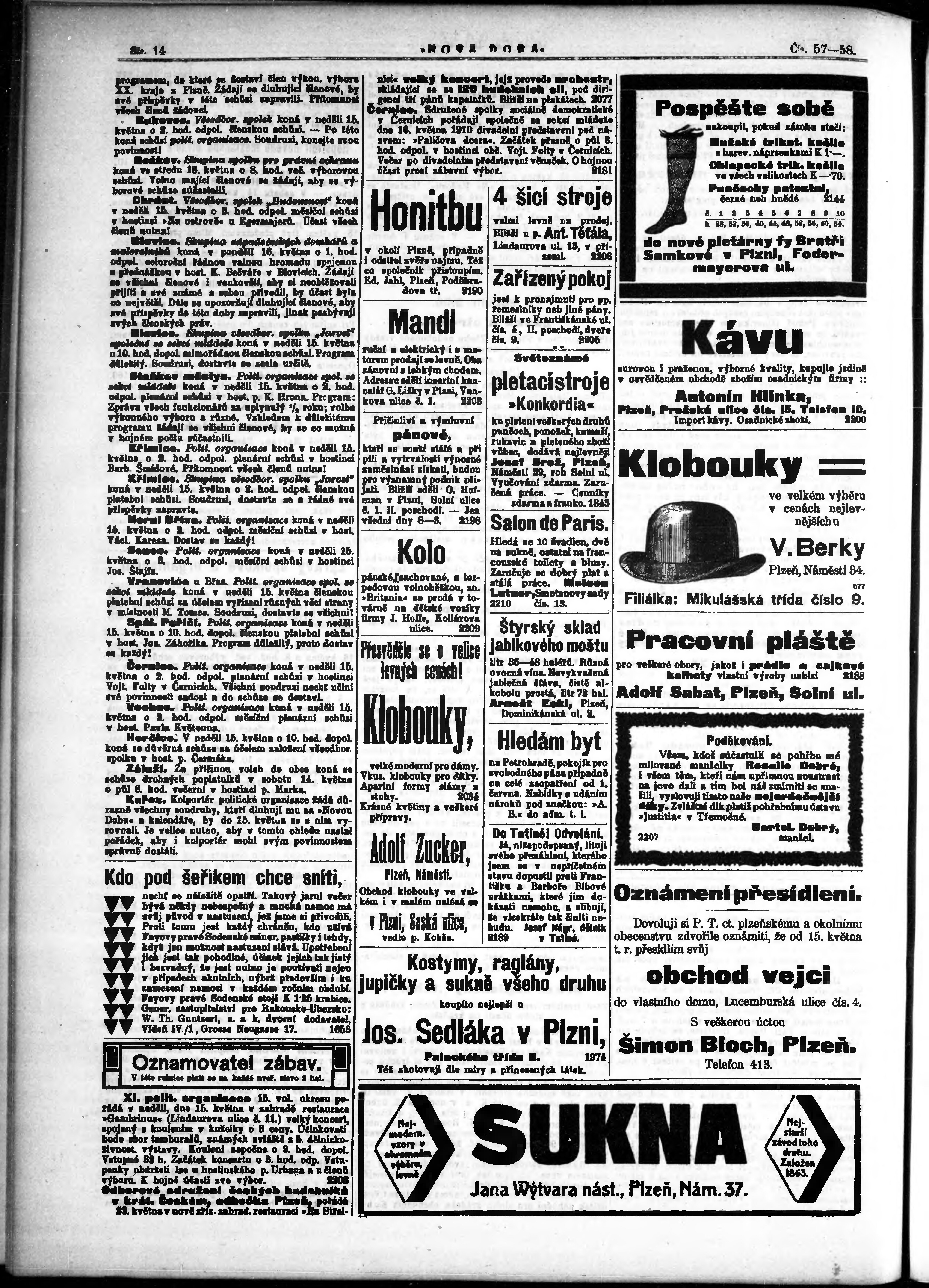 * Datum vydání výtisku: 13.5.1910 Číslo výtisku: 57 - 58