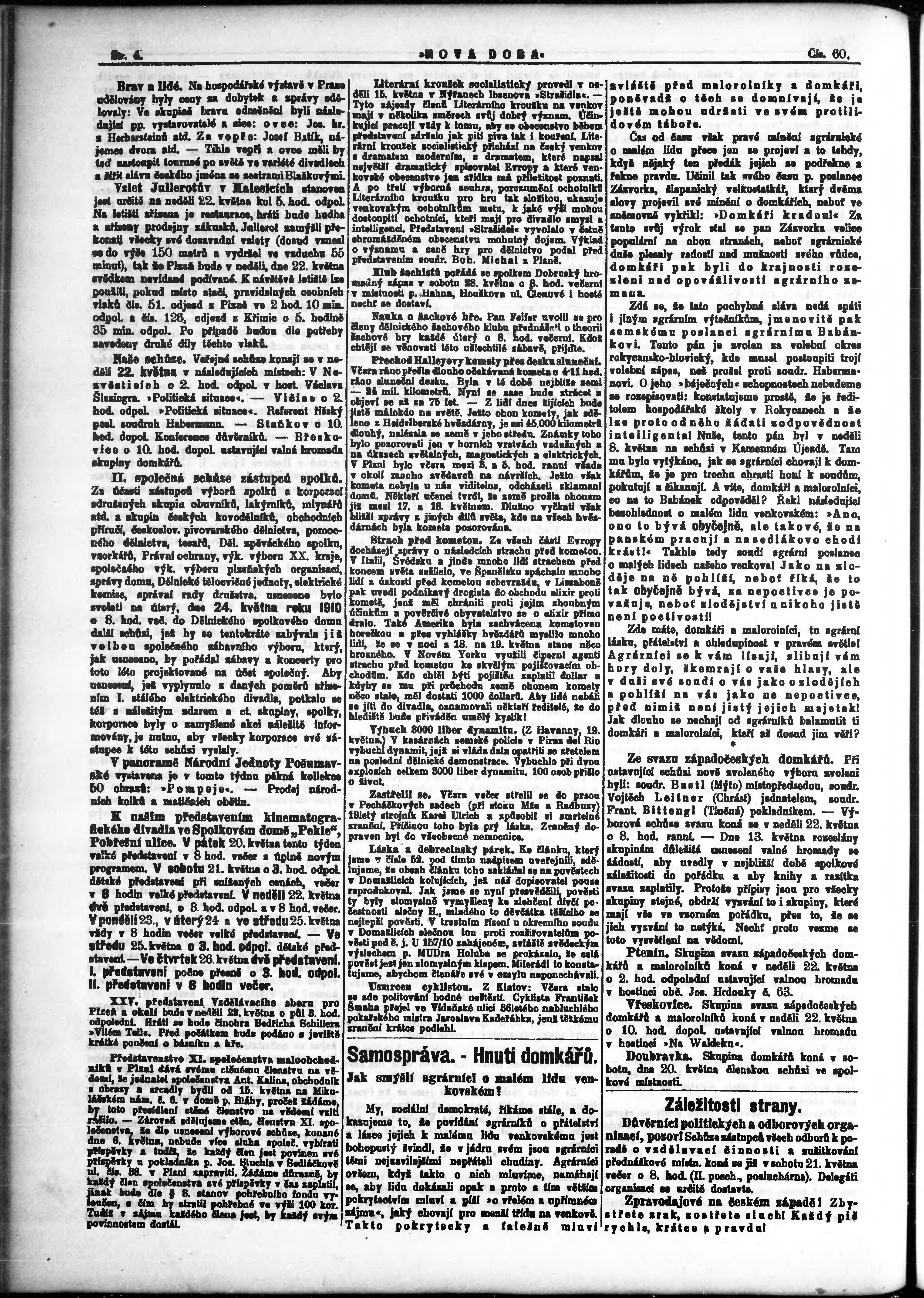 * Datum vydání výtisku: 20.5.1910 Číslo výtisku: 60