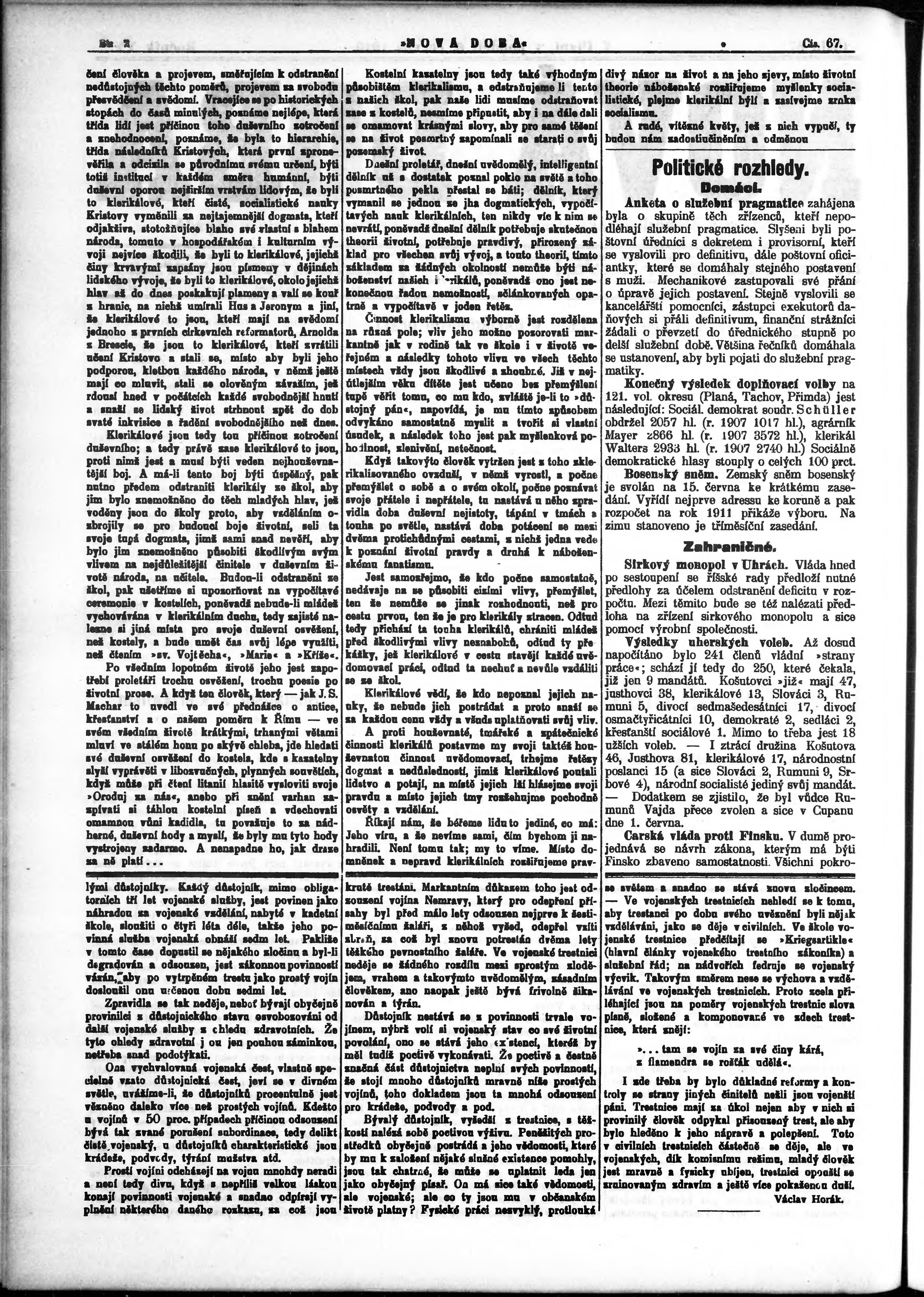 * Datum vydání výtisku: 6.6.1910 Číslo výtisku: 67