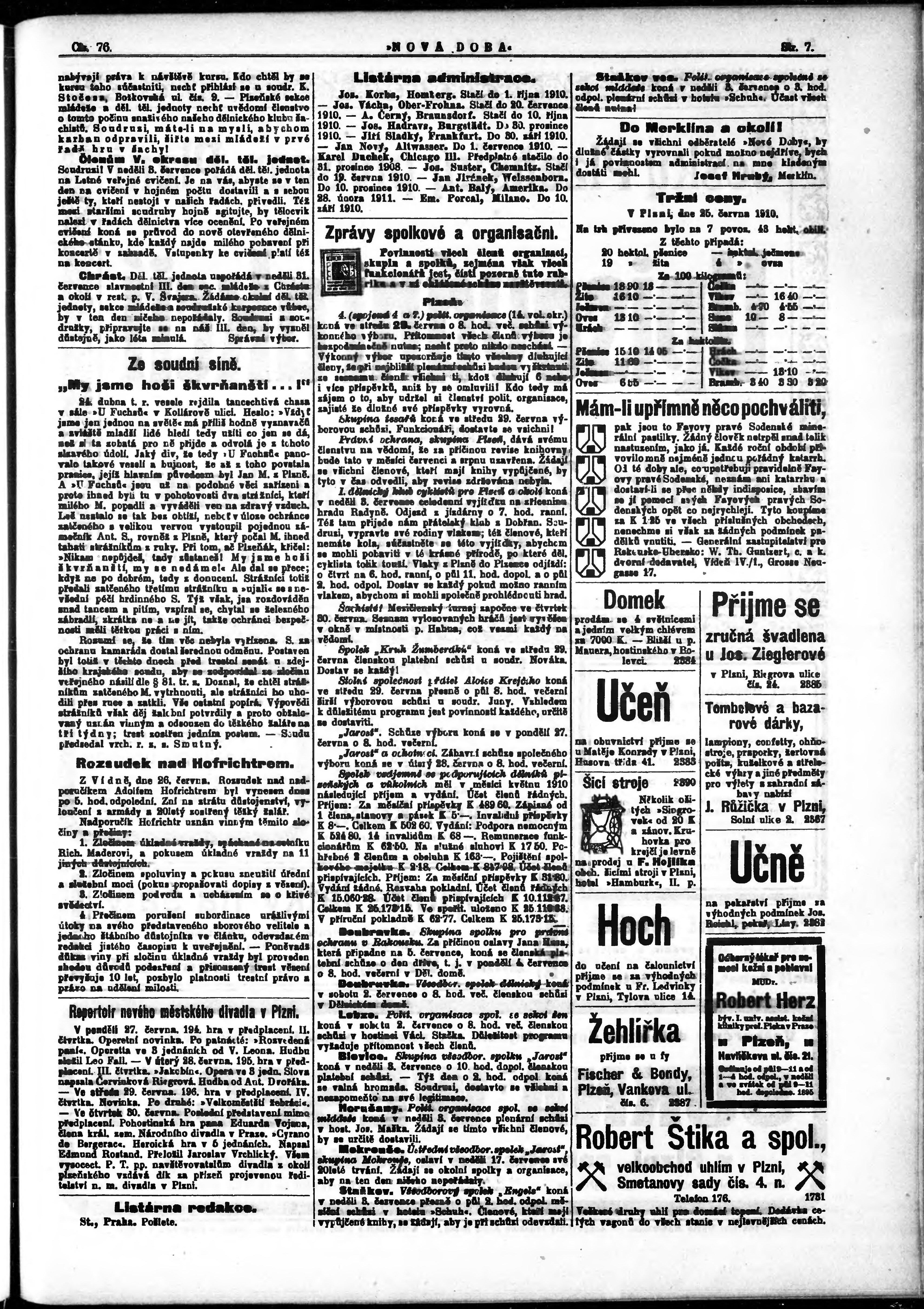 * Datum vydání výtisku: 27.6.1910 Číslo výtisku: 76