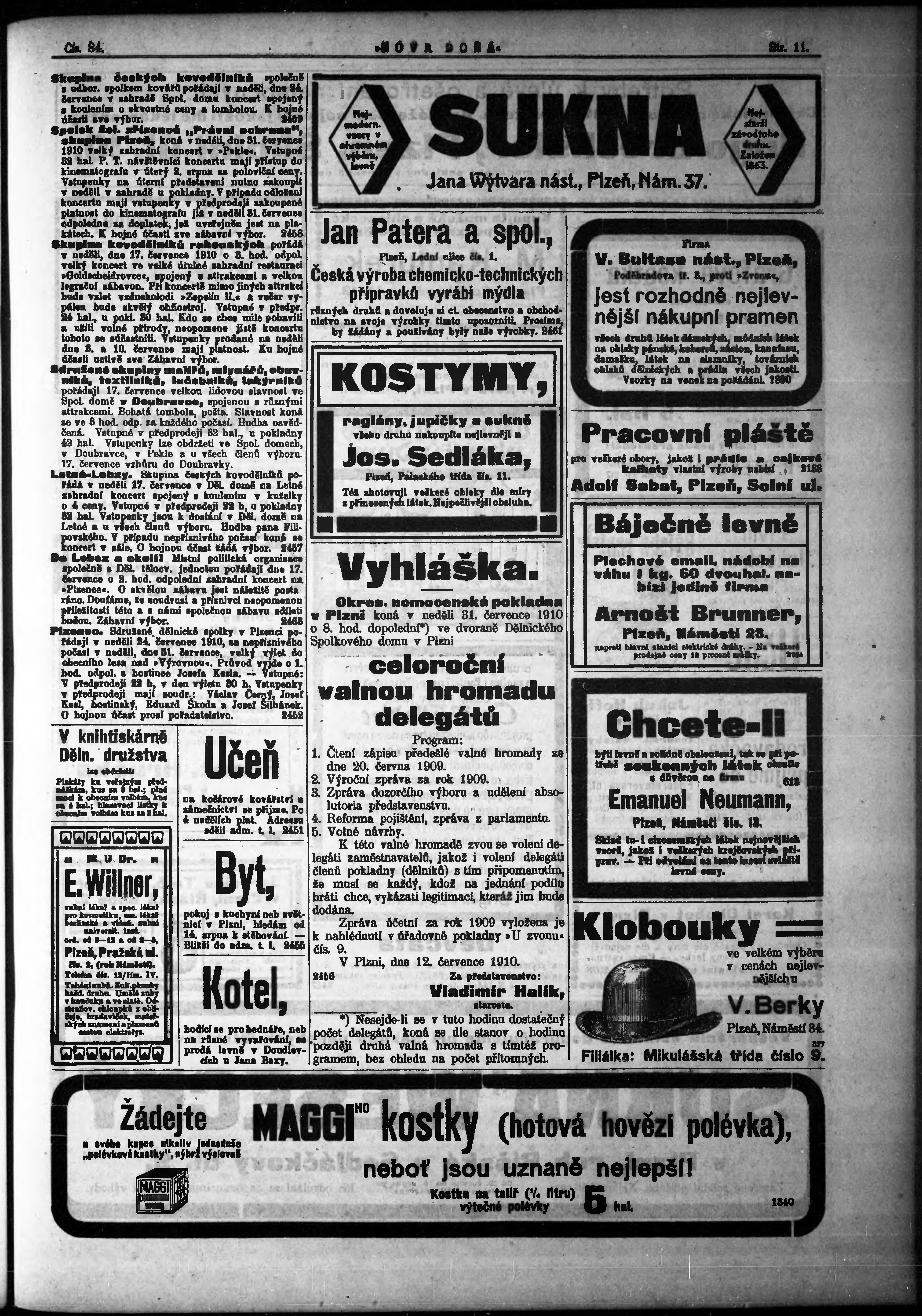 * Datum vydání výtisku: 15.7.1910 Číslo výtisku: 84