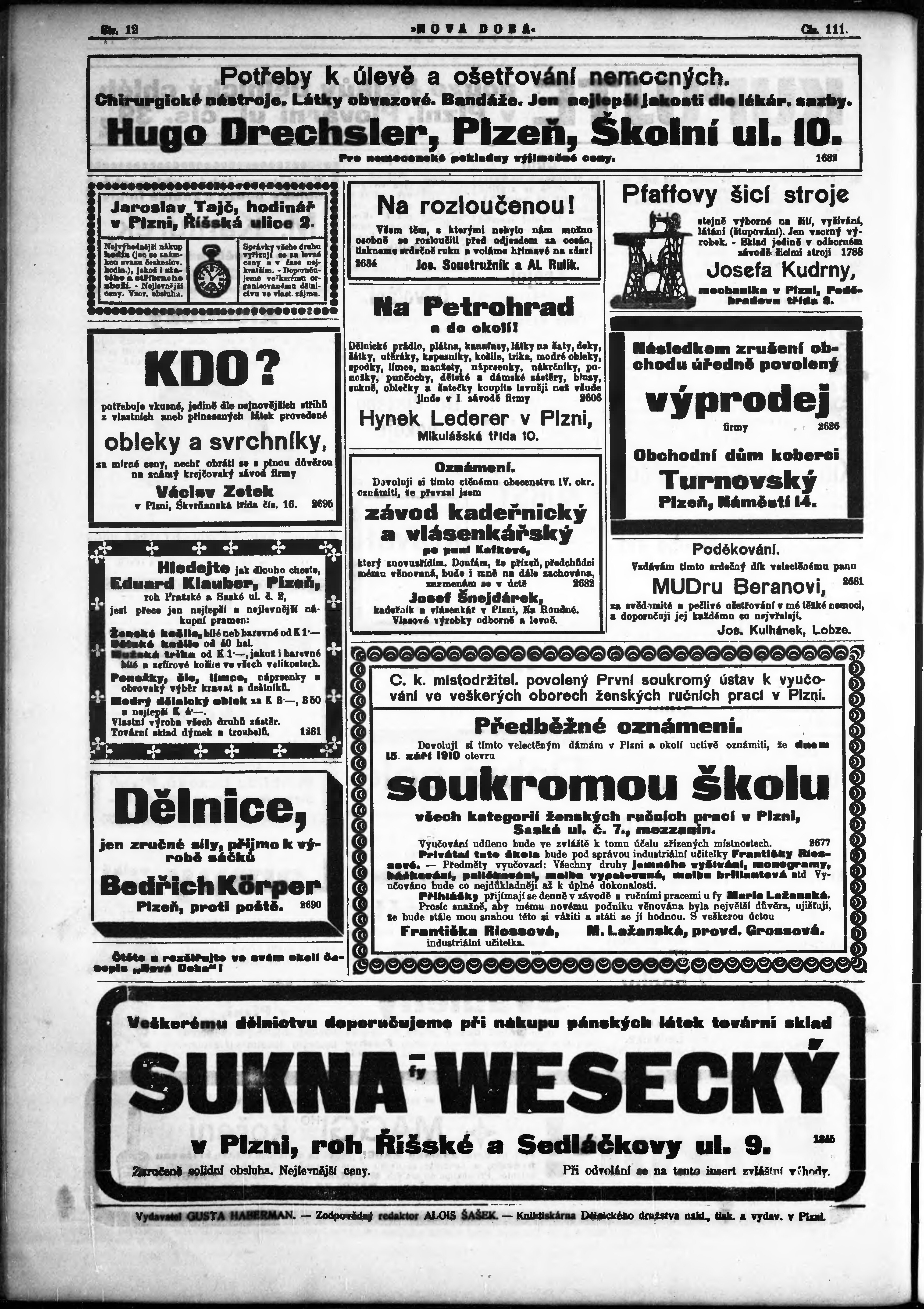 * Datum vydání výtisku: 16.9.1910 Číslo výtisku: 111