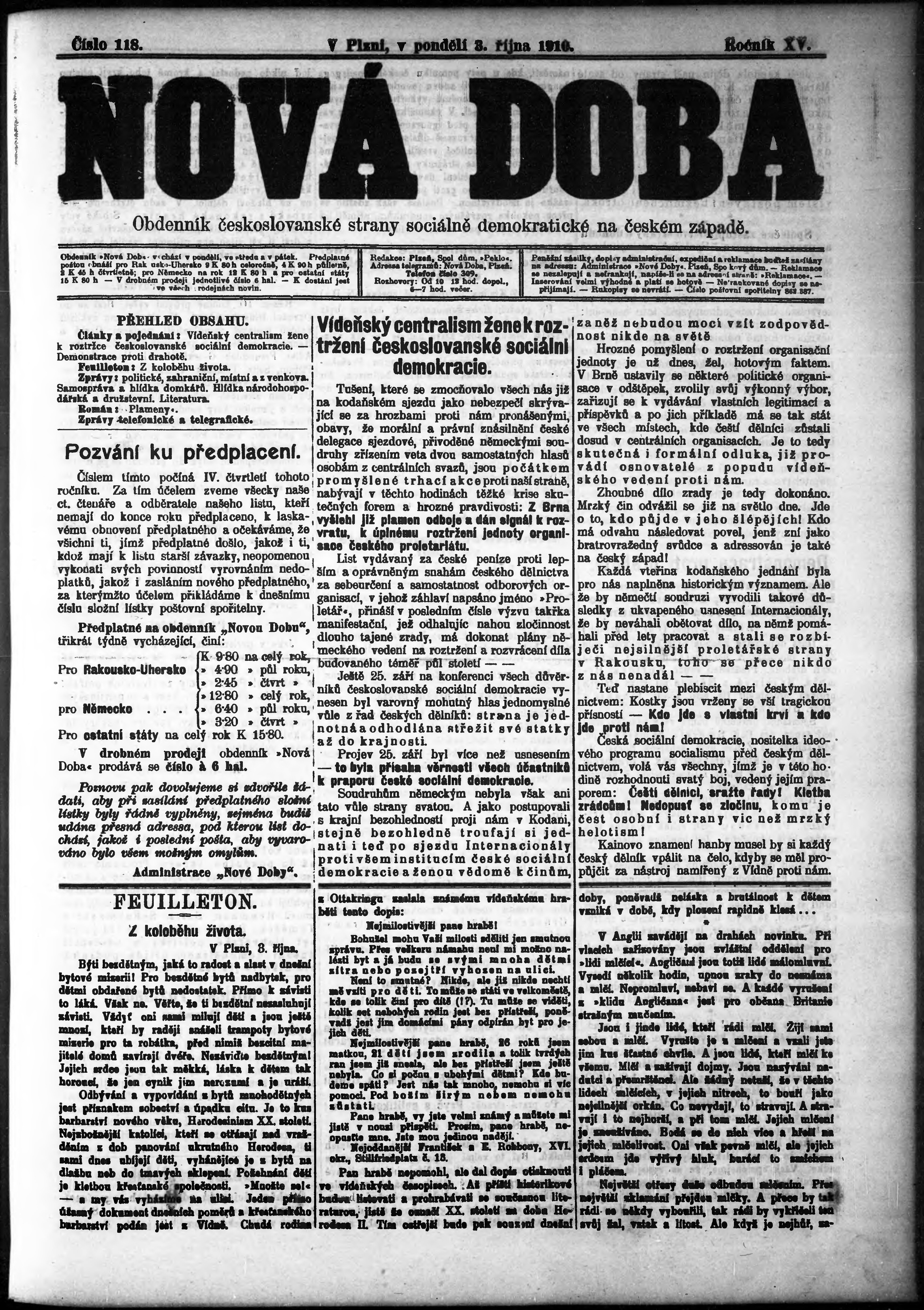 * Datum vydání výtisku: 3.10.1910 Číslo výtisku: 118