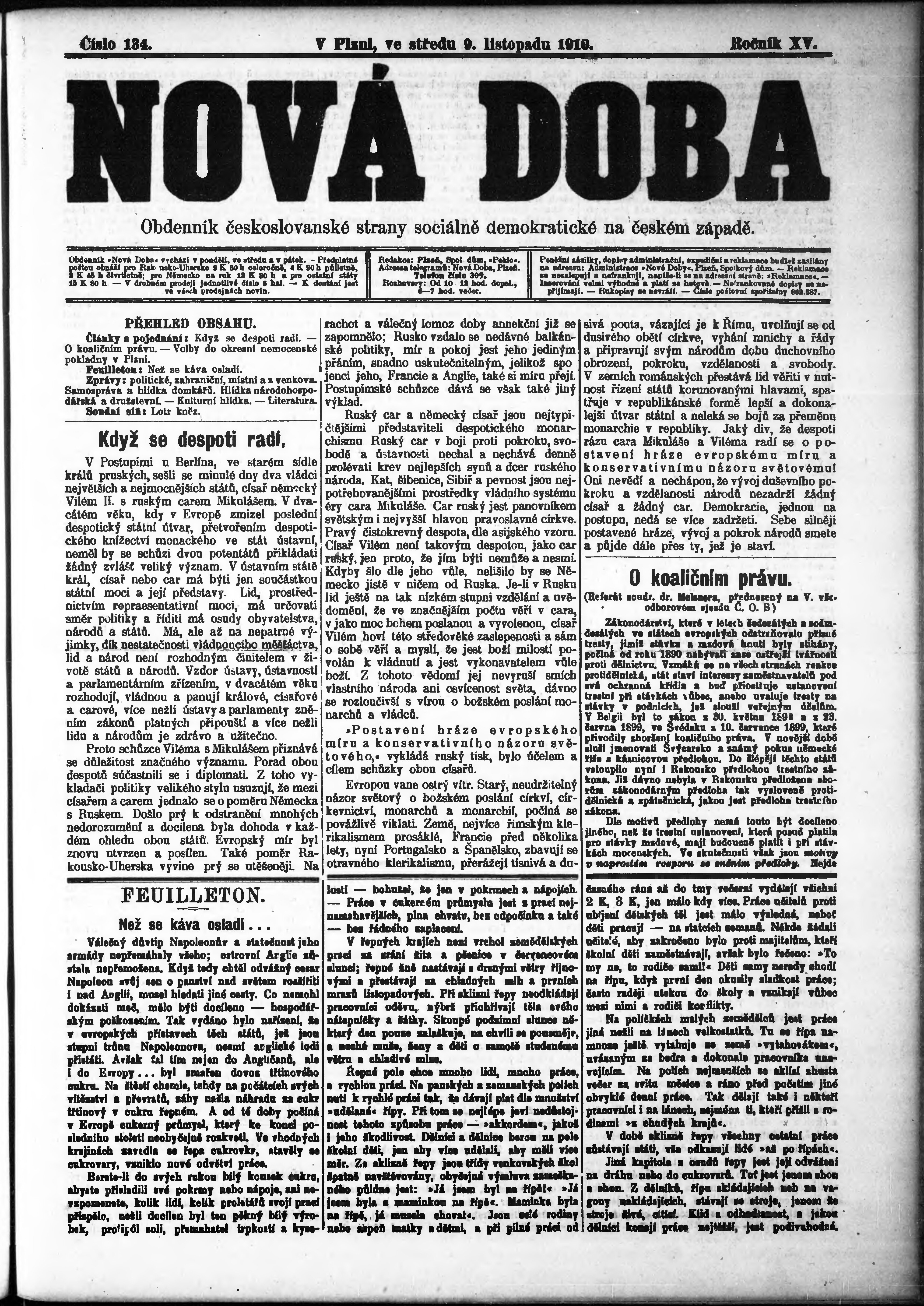 * Datum vydání výtisku: 9.11.1910 Číslo výtisku: 134