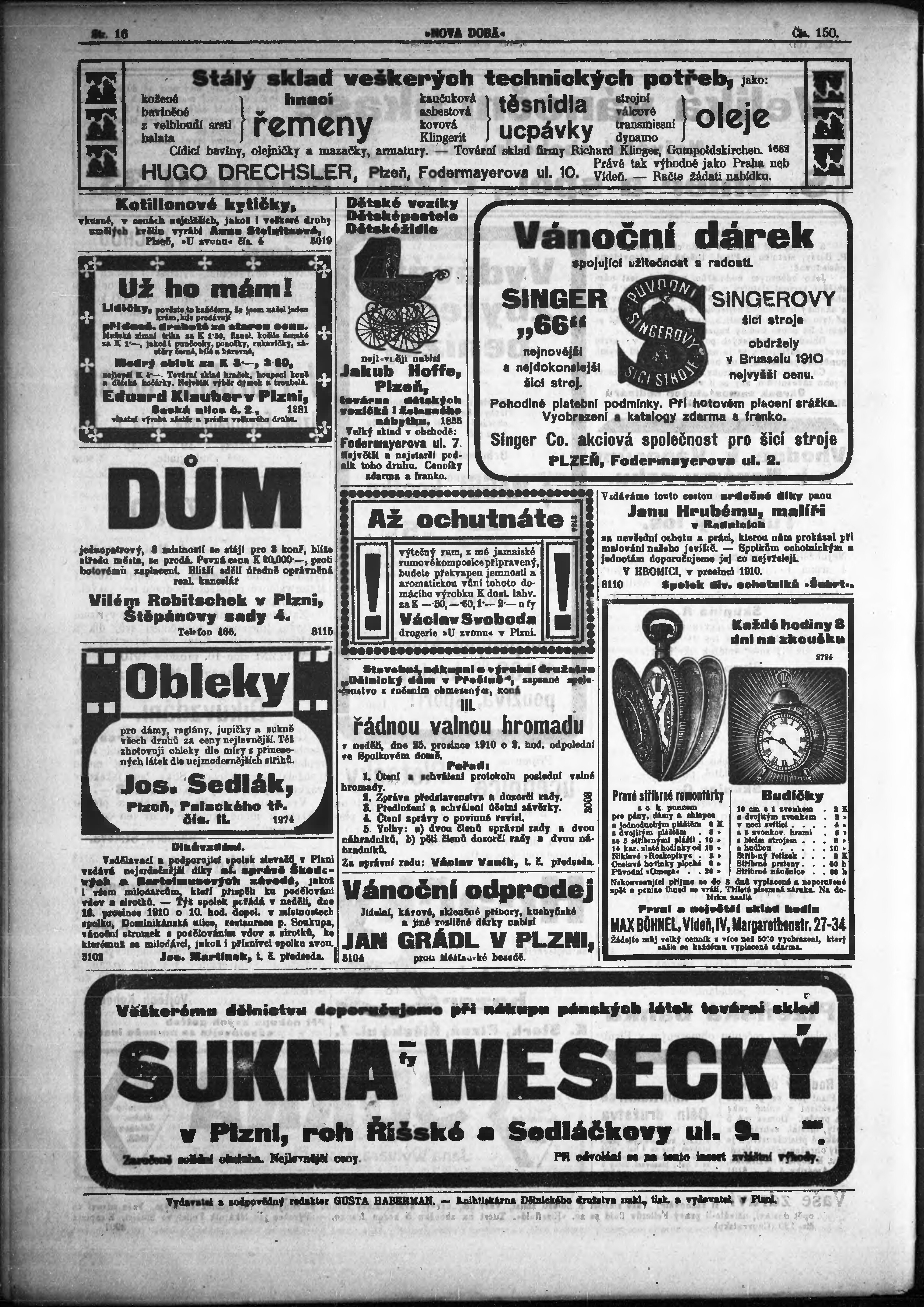 * Datum vydání výtisku: 16.12.1910 Číslo výtisku: 150