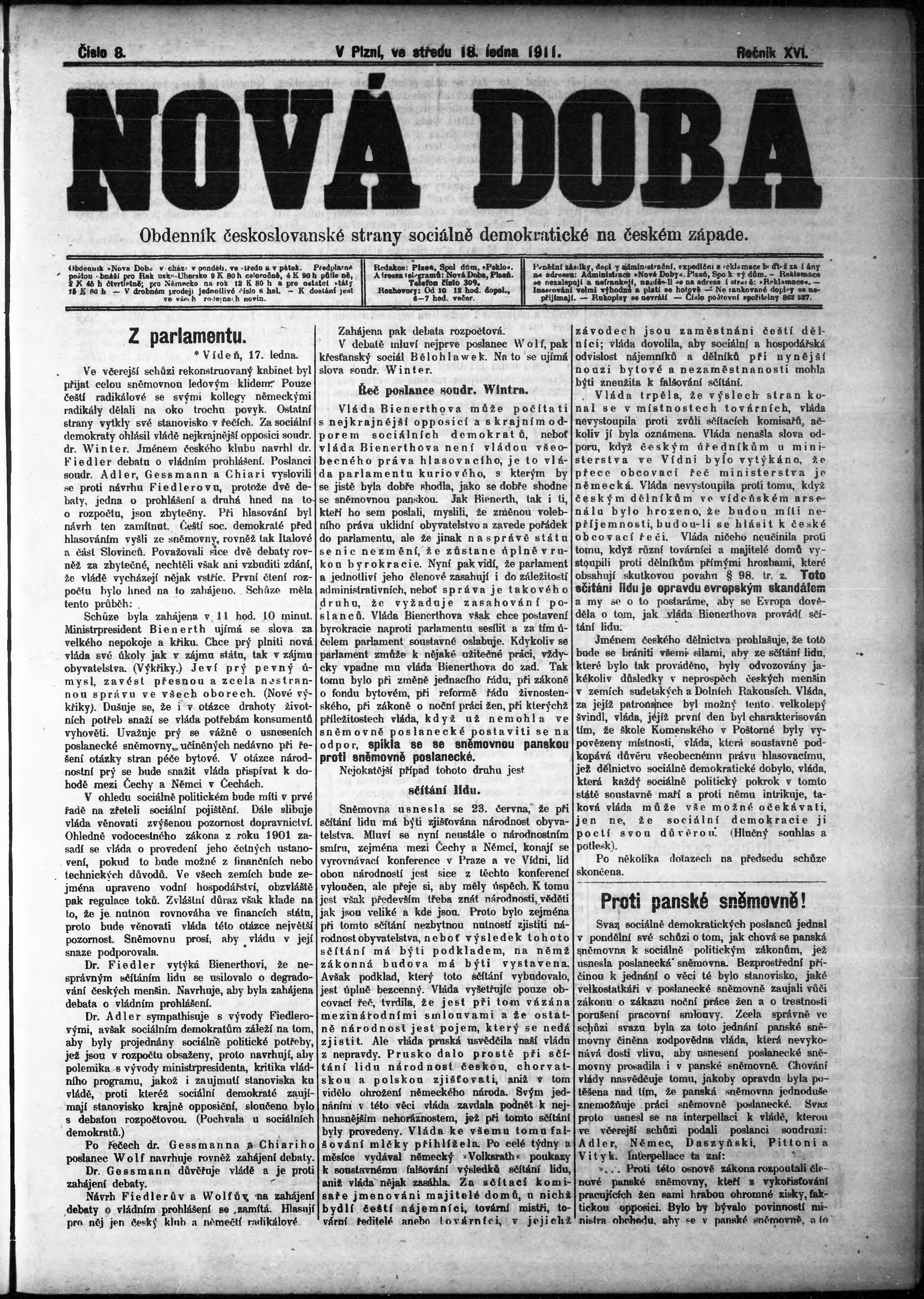 * Datum vydání výtisku: 18.1.1911 Číslo výtisku: 8
