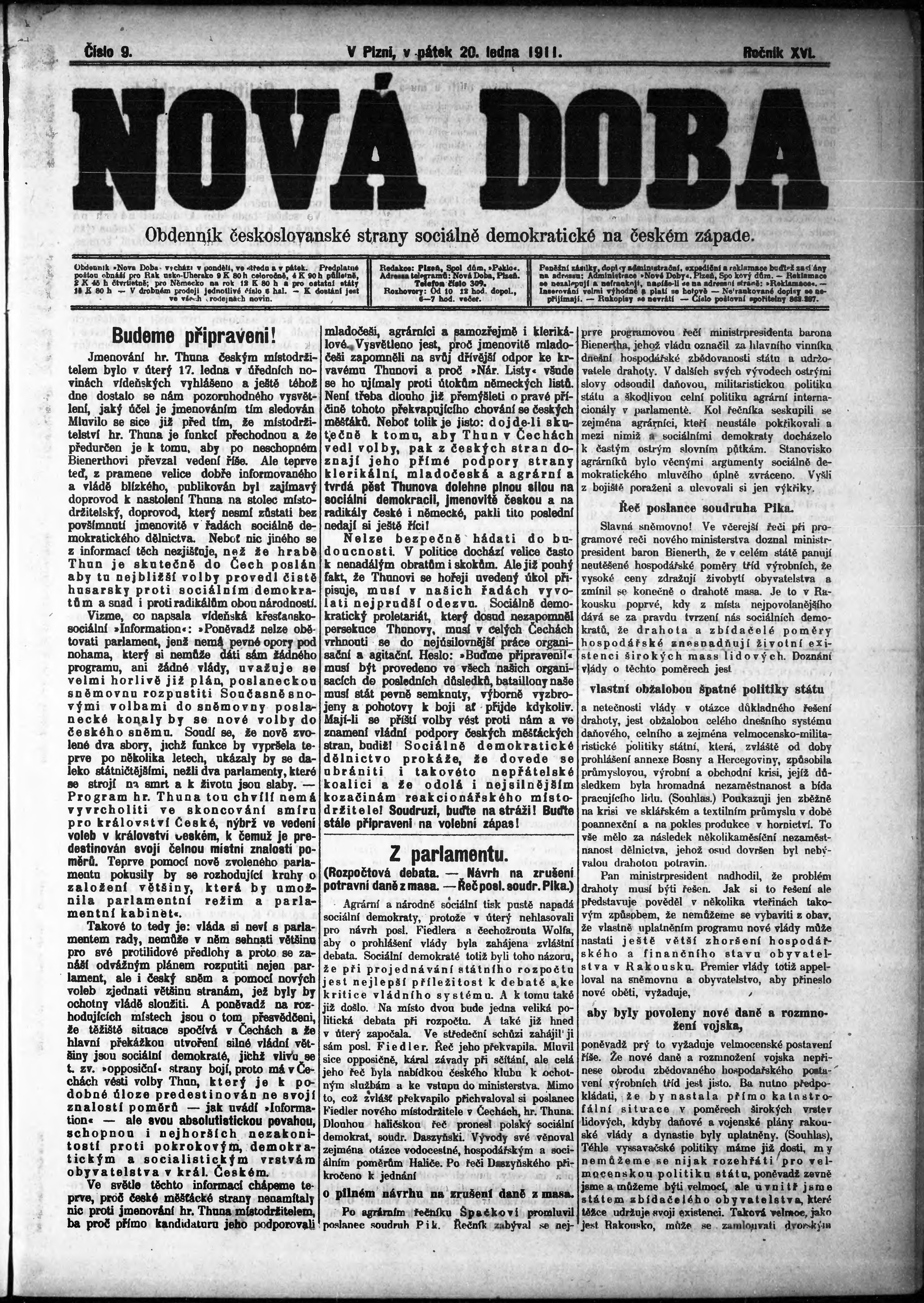 * Datum vydání výtisku: 20.1.1911 Číslo výtisku: 9