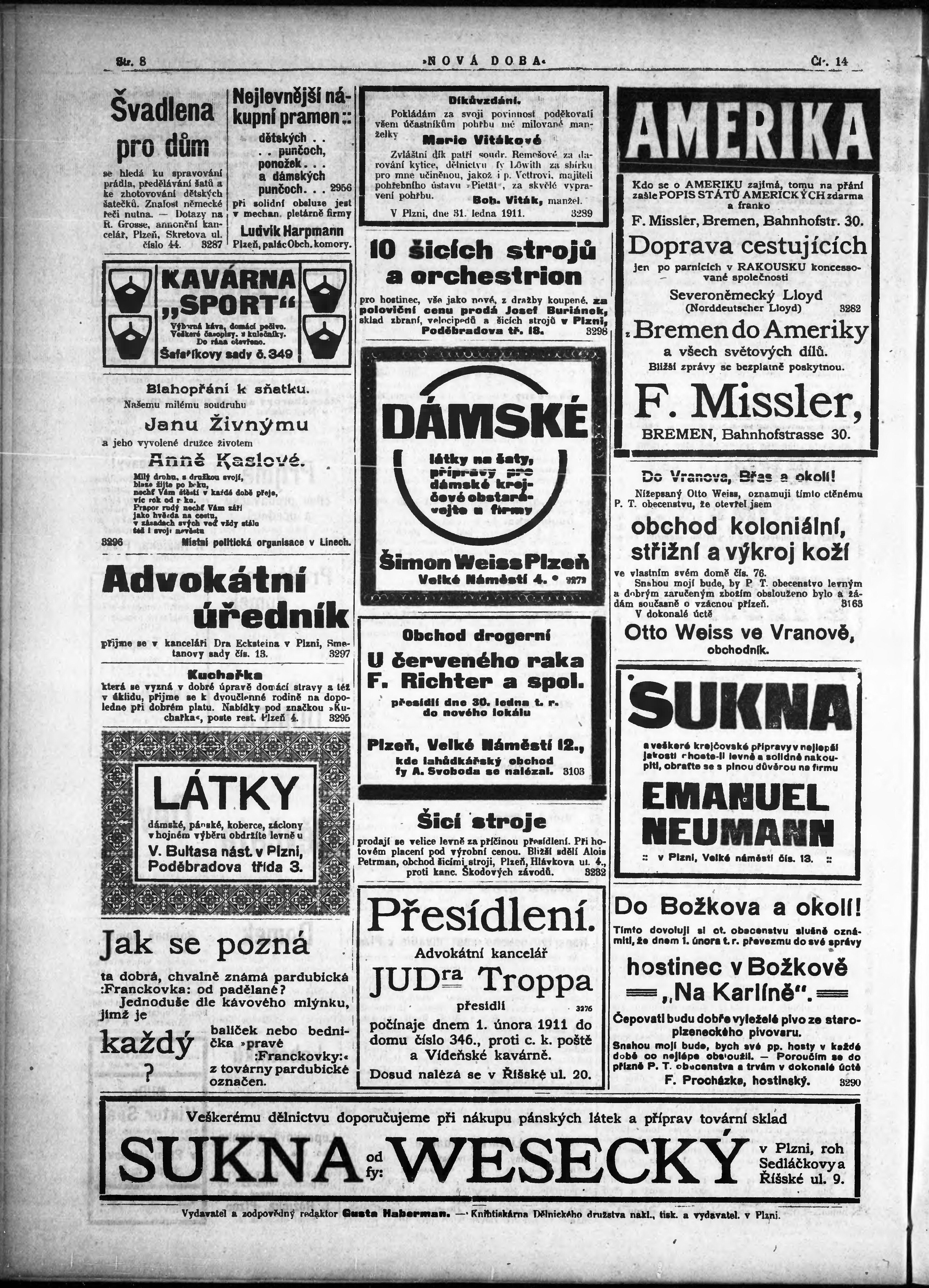 * Datum vydání výtisku: 1.2.1911 Číslo výtisku: 14