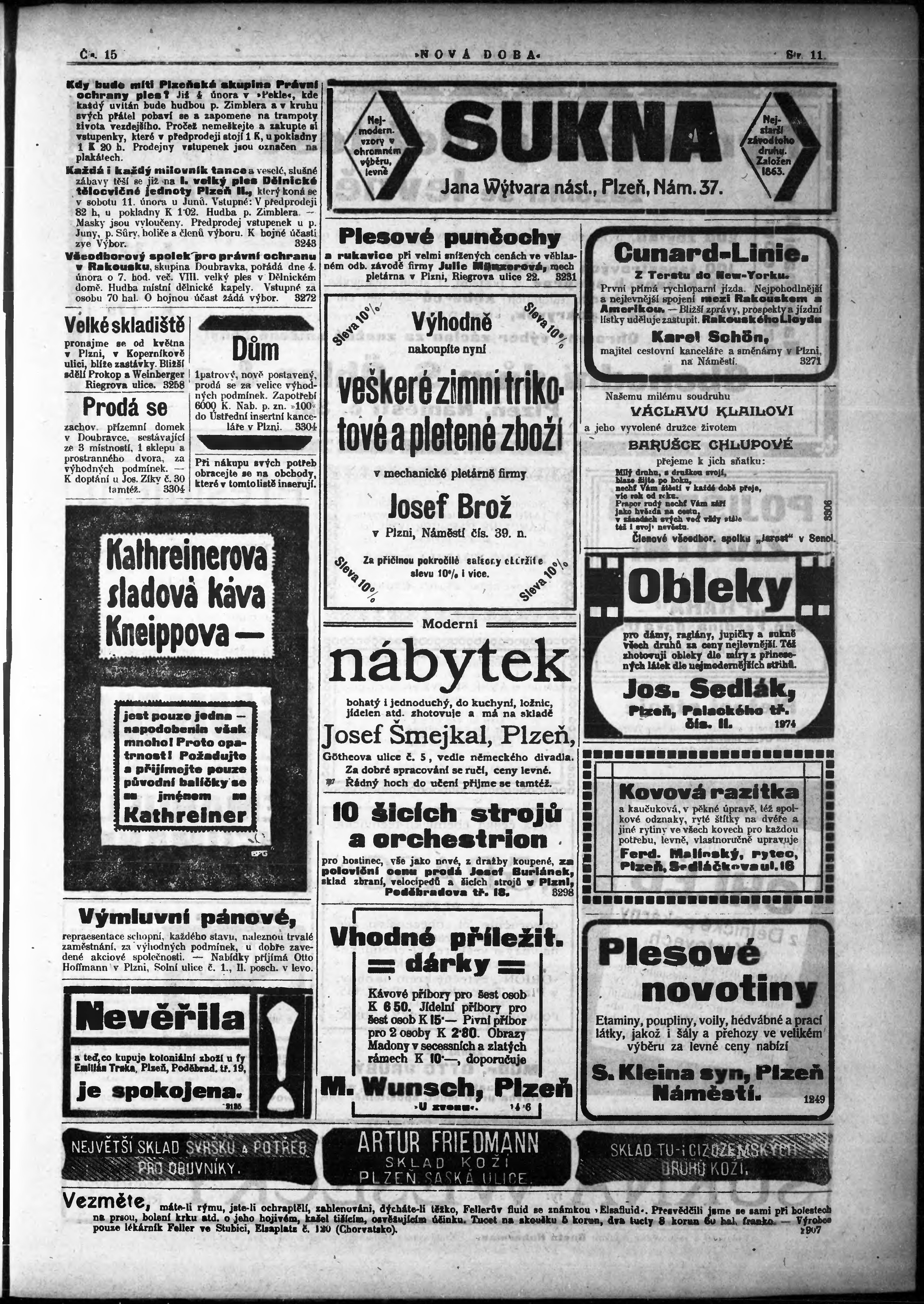 * Datum vydání výtisku: 3.2.1911 Číslo výtisku: 15