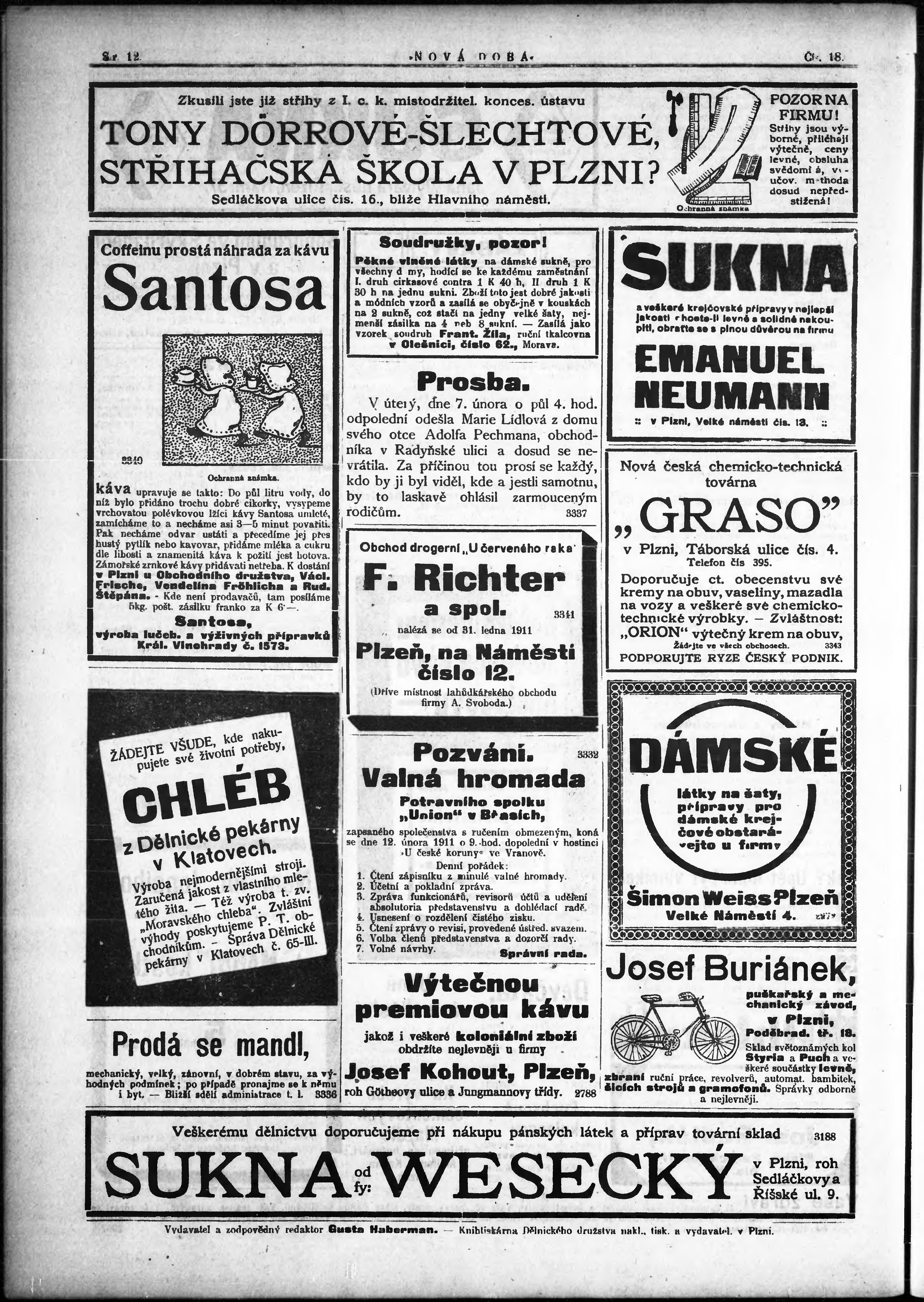 * Datum vydání výtisku: 10.2.1911 Číslo výtisku: 18