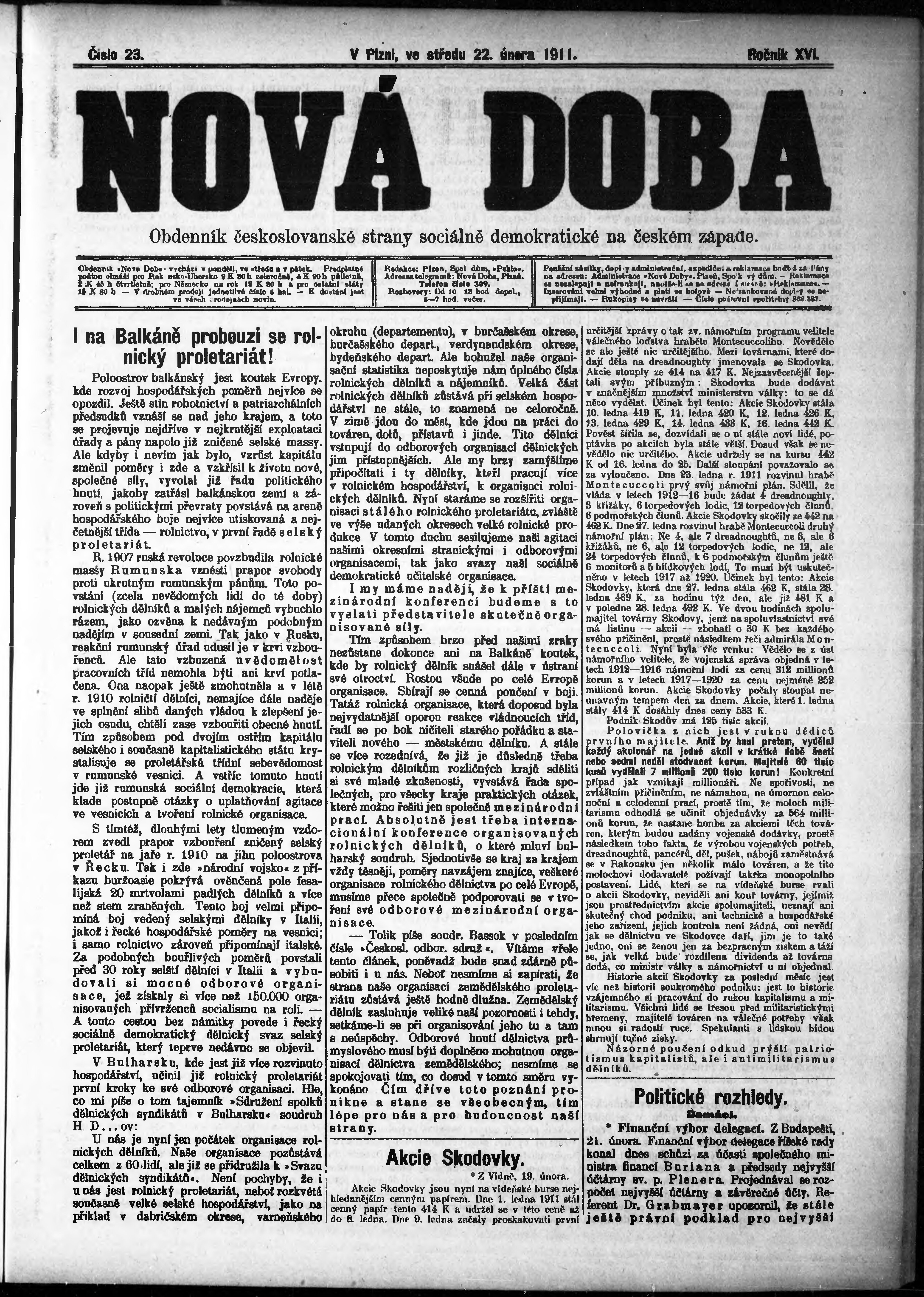 * Datum vydání výtisku: 22.2.1911 Číslo výtisku: 23