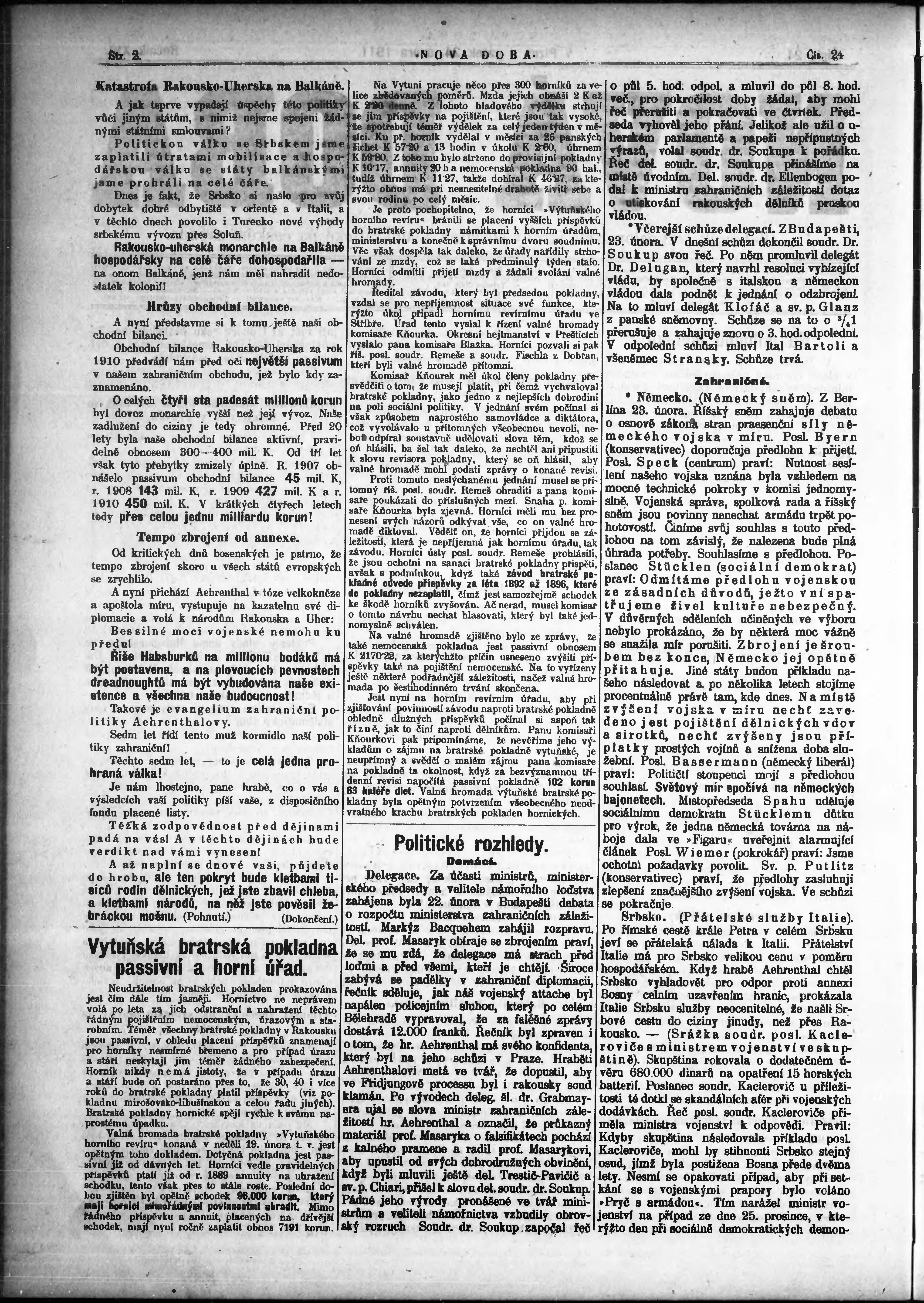 * Datum vydání výtisku: 24.2.1911 Číslo výtisku: 24