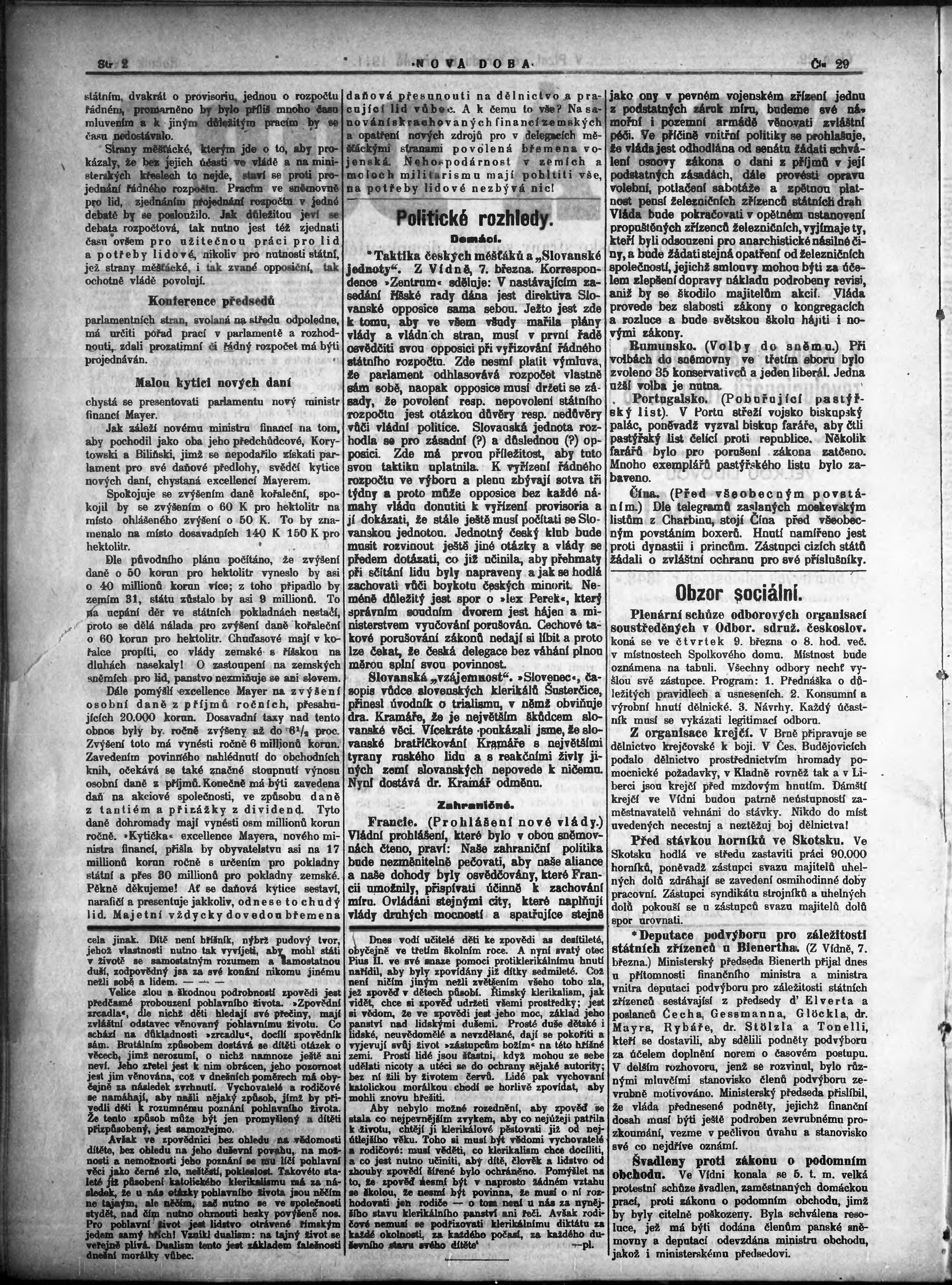 * Datum vydání výtisku: 8.3.1911 Číslo výtisku: 29