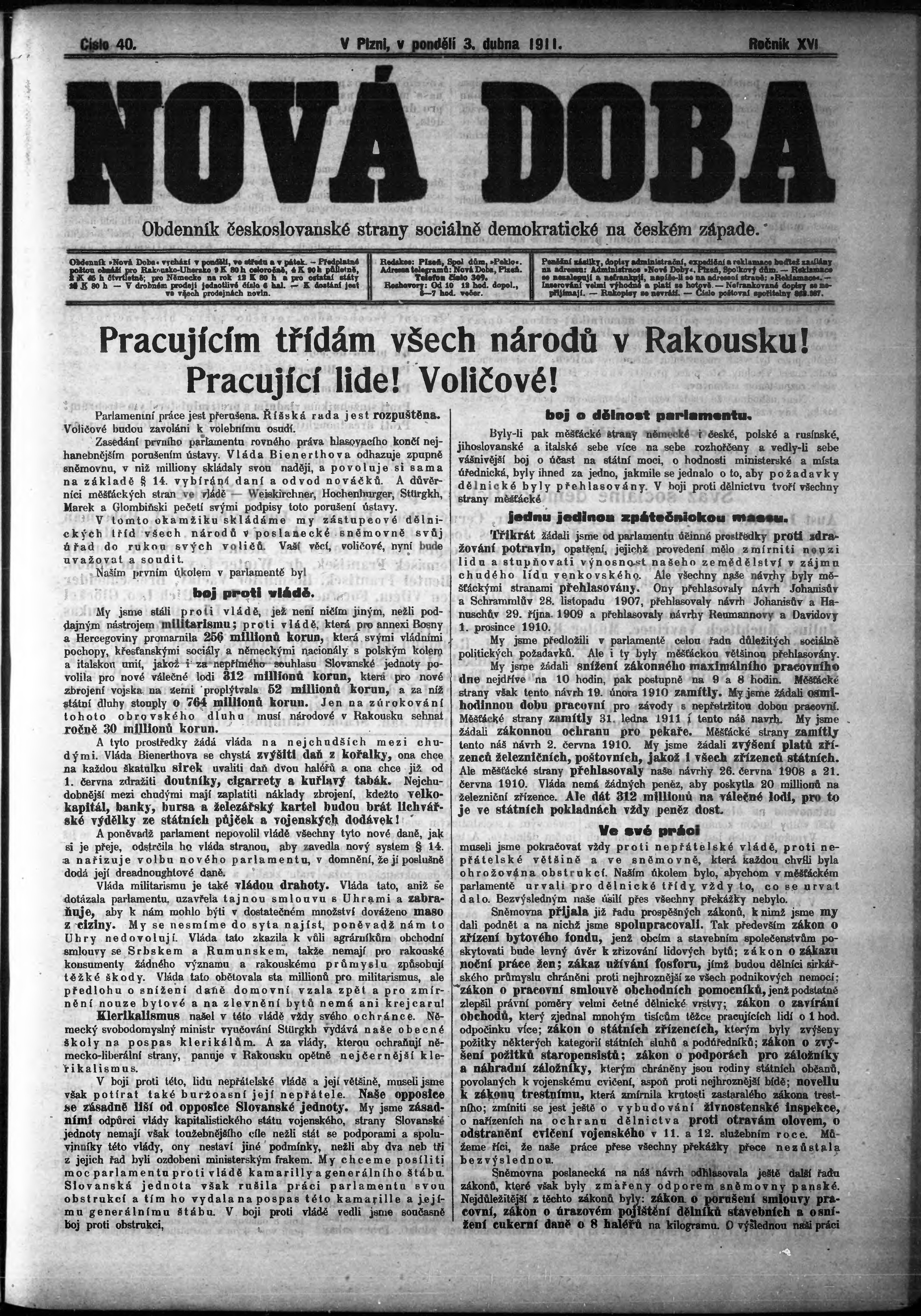 * Datum vydání výtisku: 3.4.1911 Číslo výtisku: 40