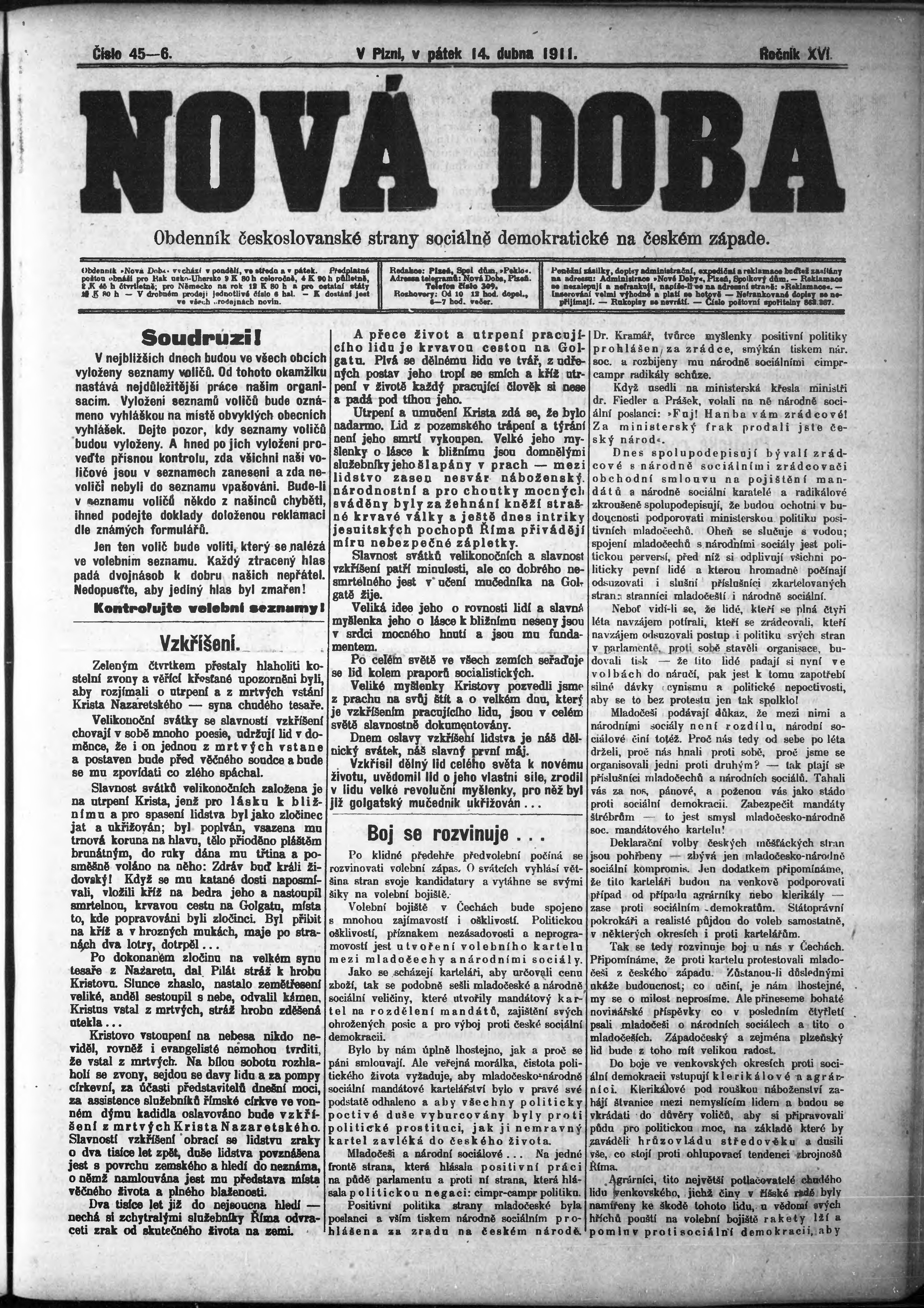 * Datum vydání výtisku: 14.4.1911 Číslo výtisku: 45 - 46