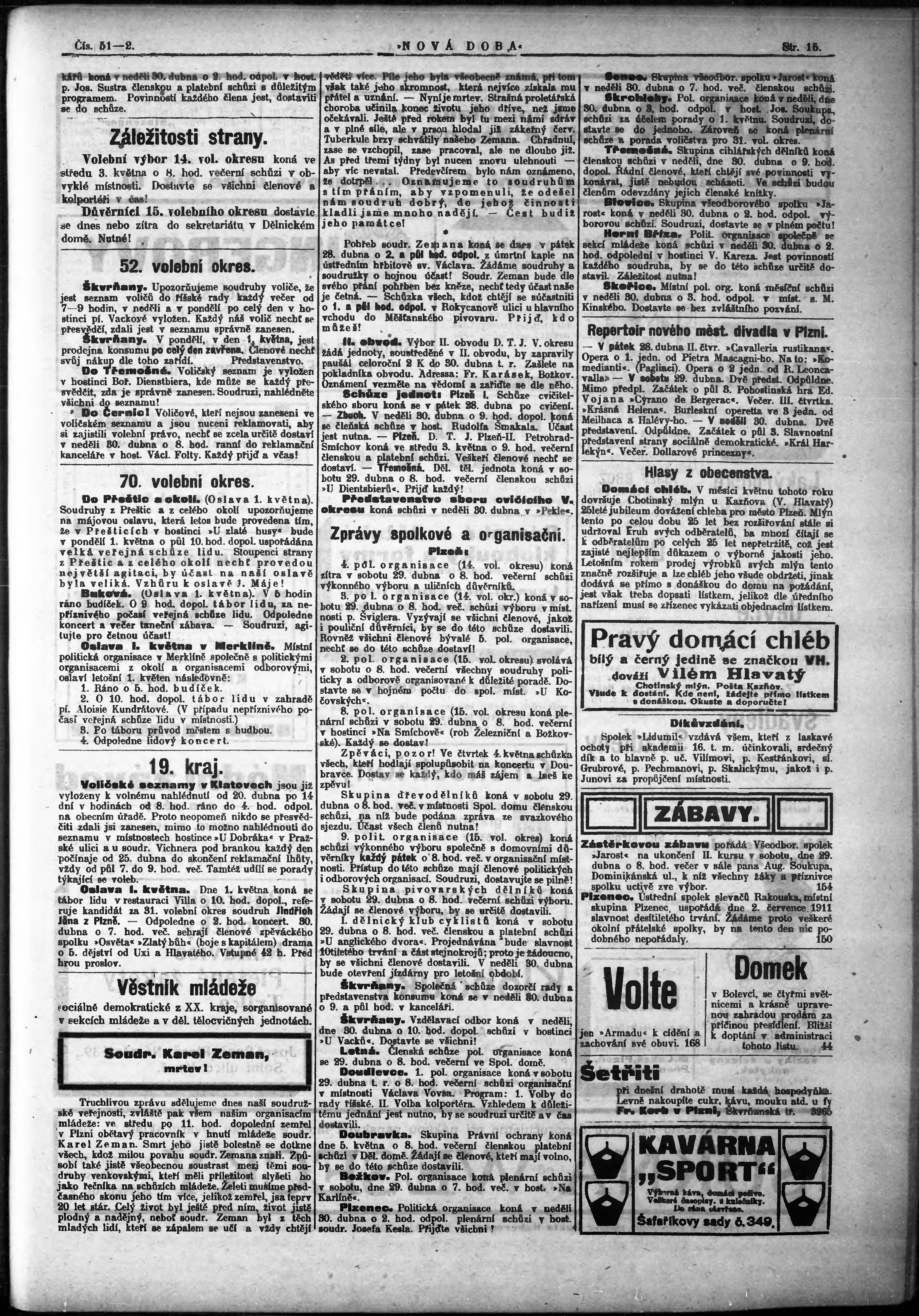 * Datum vydání výtisku: 28.4.1911 Číslo výtisku: 51 - 52