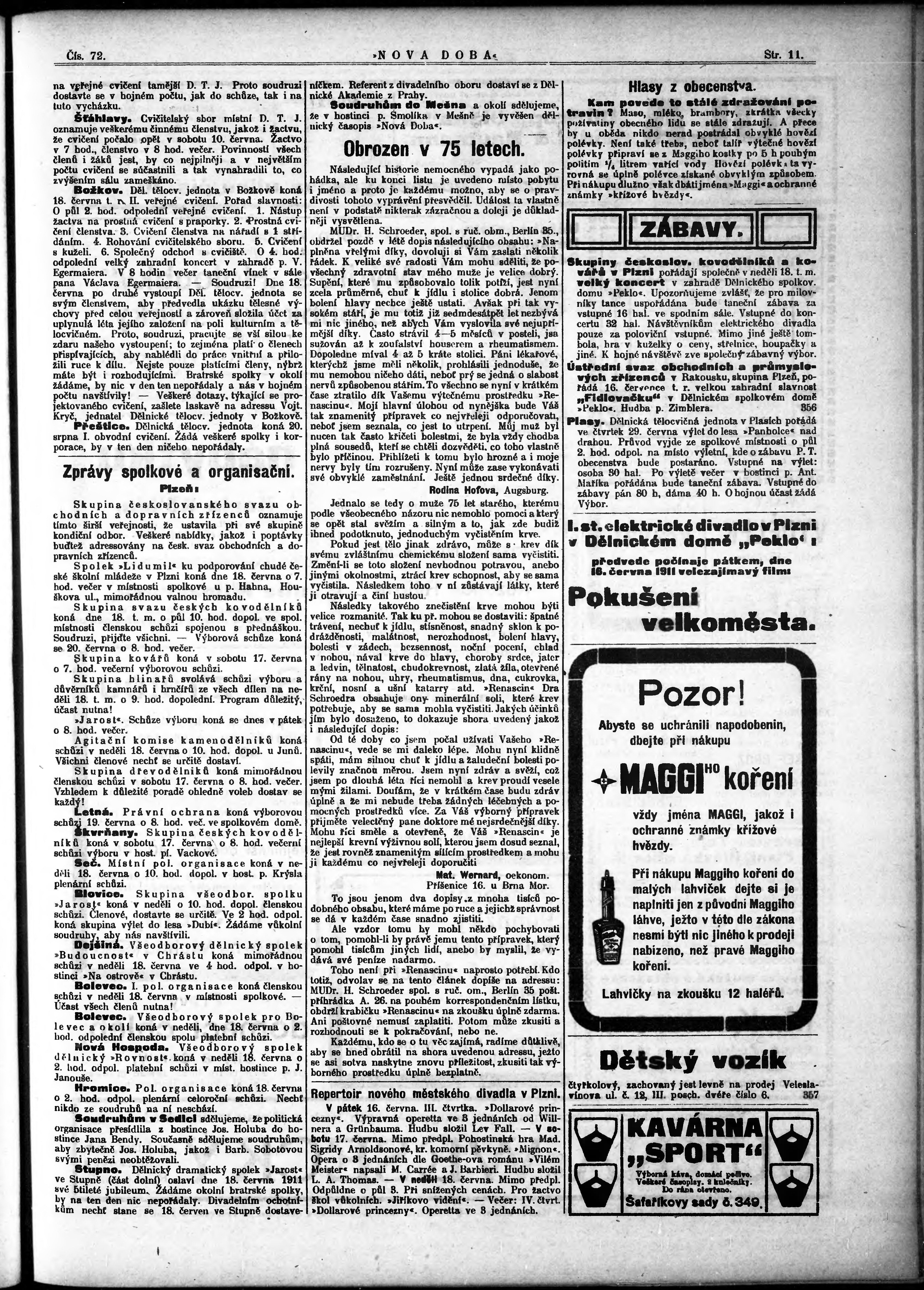 * Datum vydání výtisku: 16.6.1911 Číslo výtisku: 72